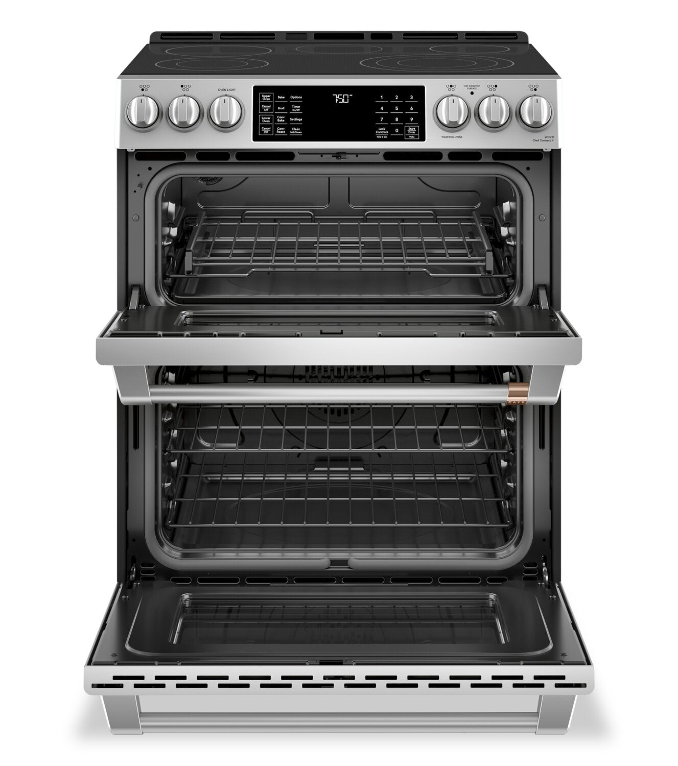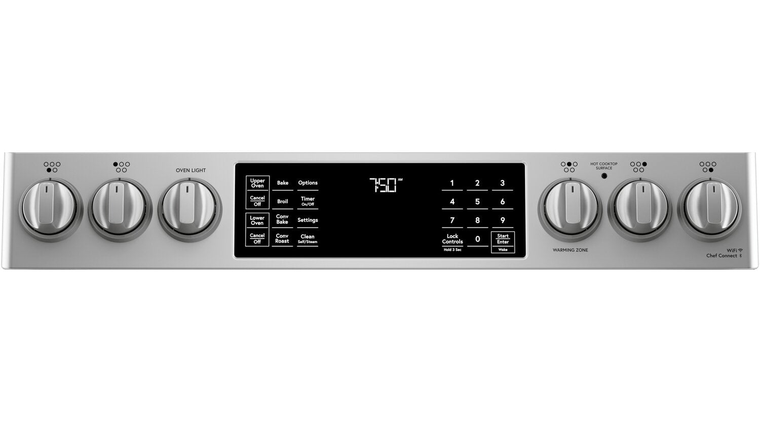| Caractéristiques de l'électroménager | Four double, Amovible avec commandes à l’avant, Mode sabbat, Autonettoyage, Nettoyage à la vapeur, Thermomètre intégré, Compatibilité intelligente, Surface lisse |