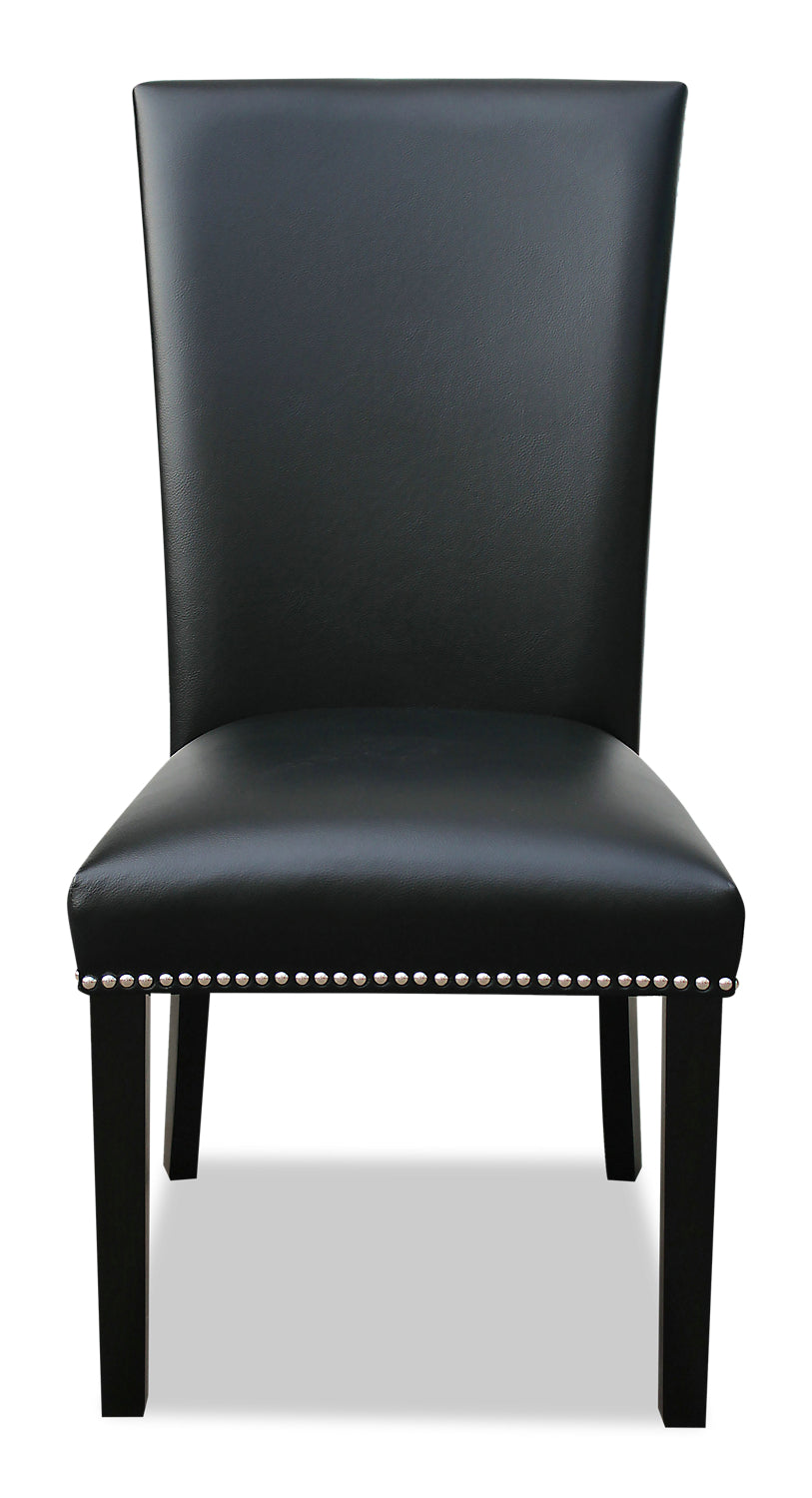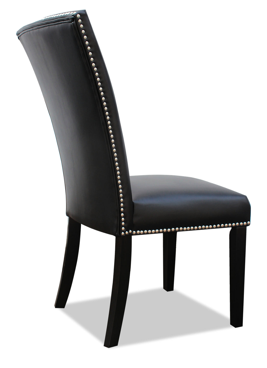 | Détails décoratifs | Des clous décoratifs argentés ornent la bordure de la chaise. |