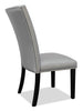 | Détails décoratifs | Des clous décoratifs argentés ornent la bordure de la chaise. |