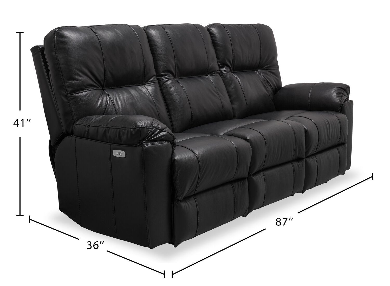 Largeur : 87 po (221,0 cm) Hauteur : 41 po (104,1 cm) Profondeur : 36 po (91,4 cm)