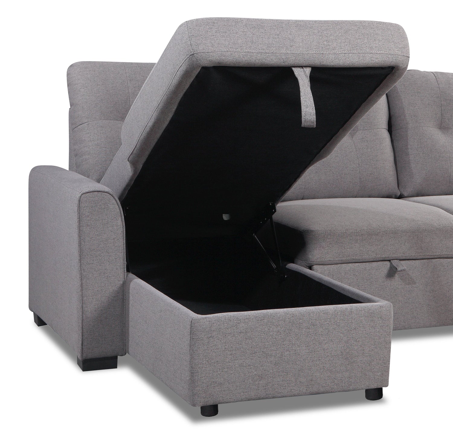 | Options de rangement | Relevez le coussin de siège pour ranger des couvertures, des oreillers et d'autres articles essentiels de l'heure du coucher pour ce sofa-lit sectionnel. |