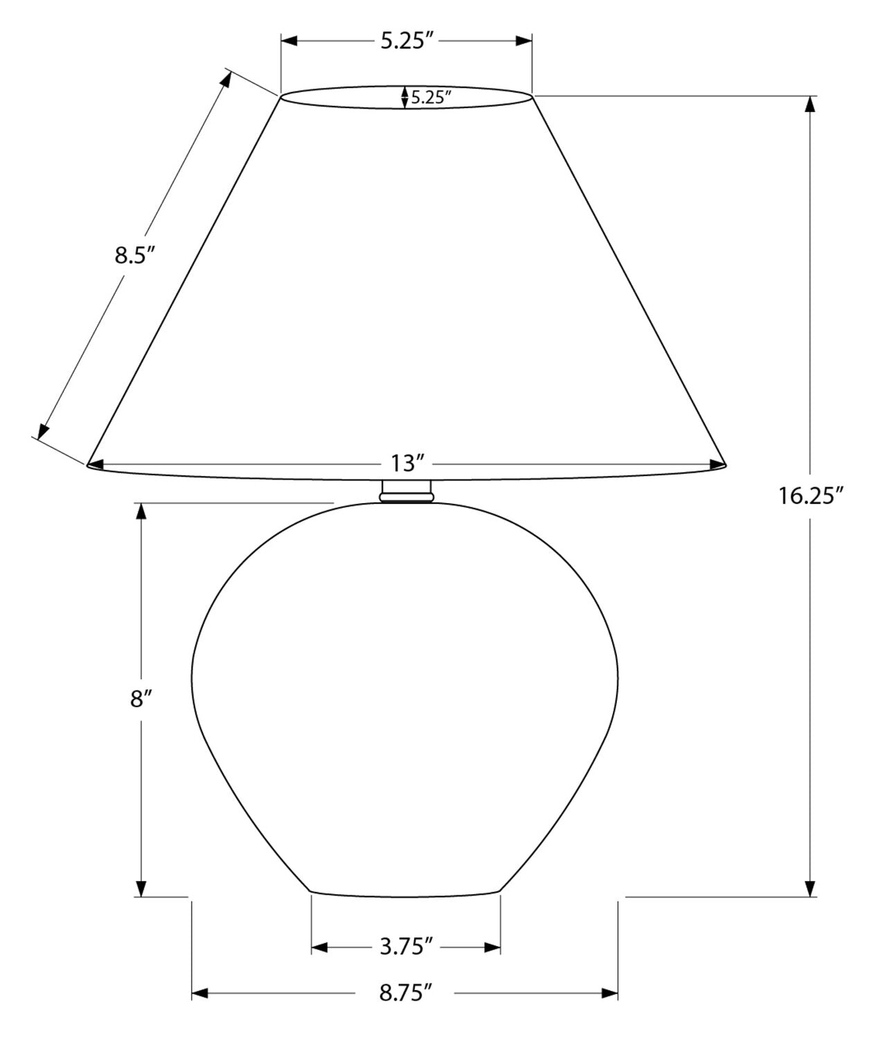 Largeur : 13 po (33,0 cm) Hauteur : 16,25 po (41,3 cm) Profondeur : 13 po (33,0 cm)