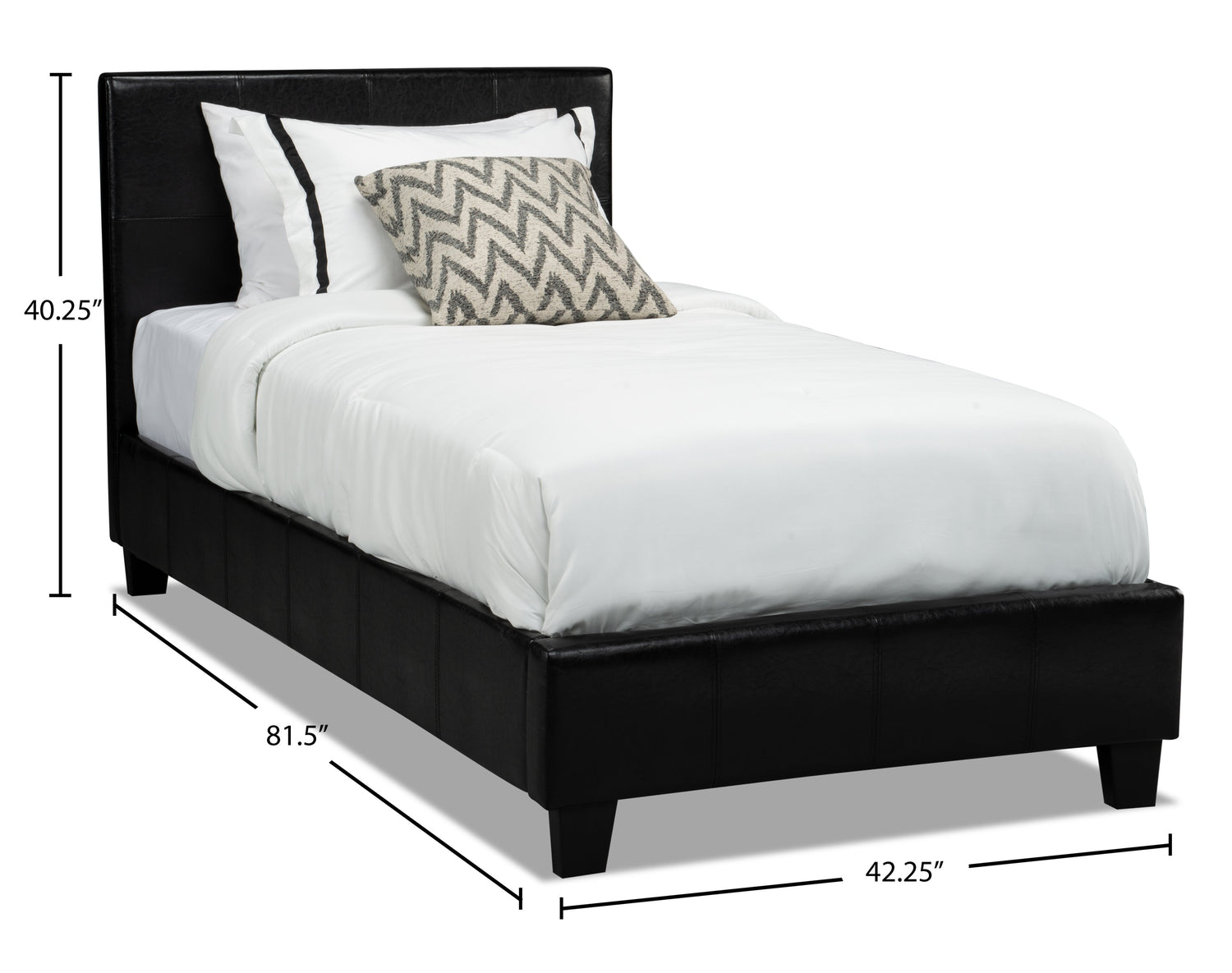 Lit rembourré Chase en tissu de cuir végétalien brun - format lit simple