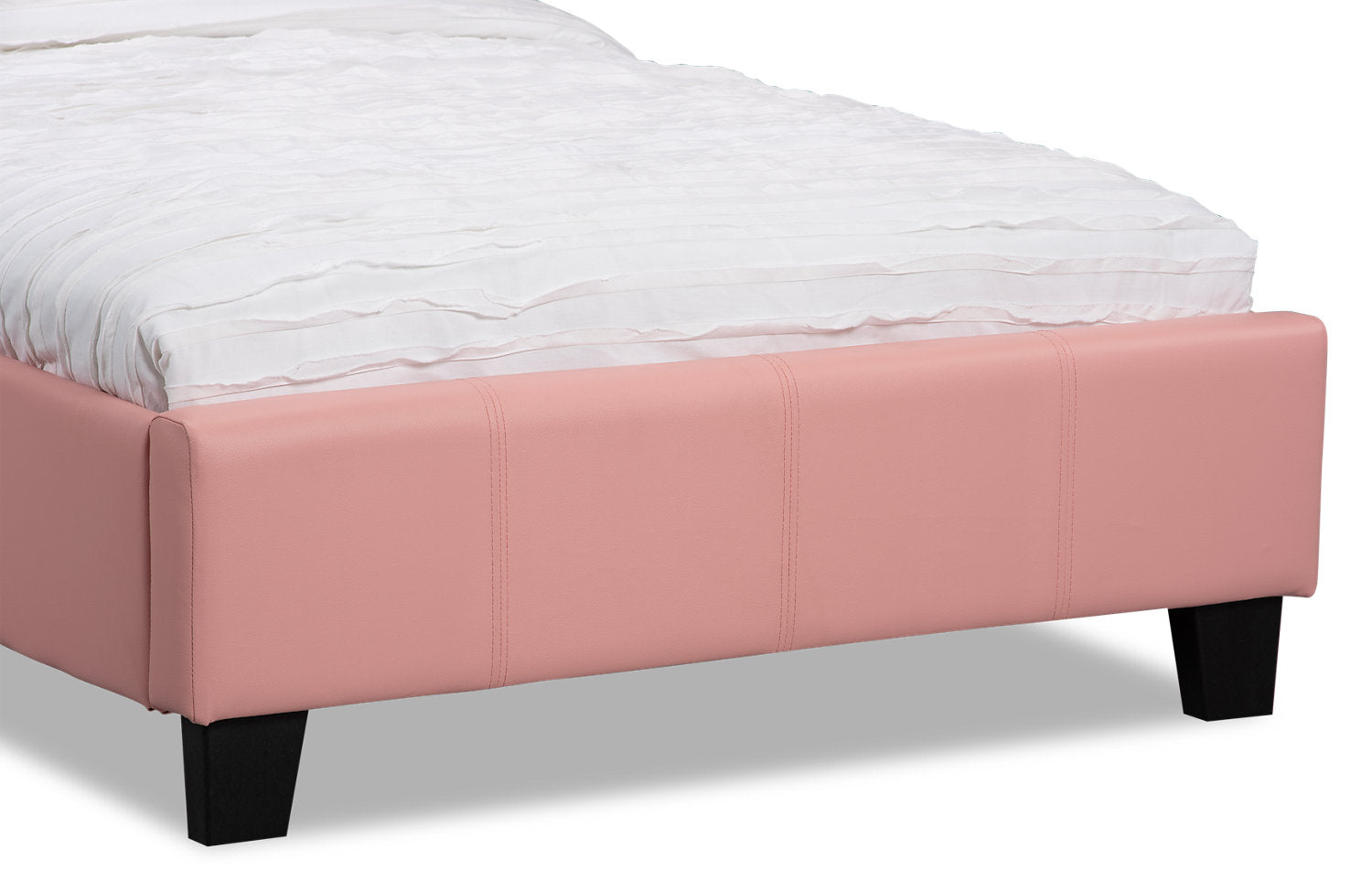 Lit rembourré Chase en tissu de cuir végétalien rose - format lit simple