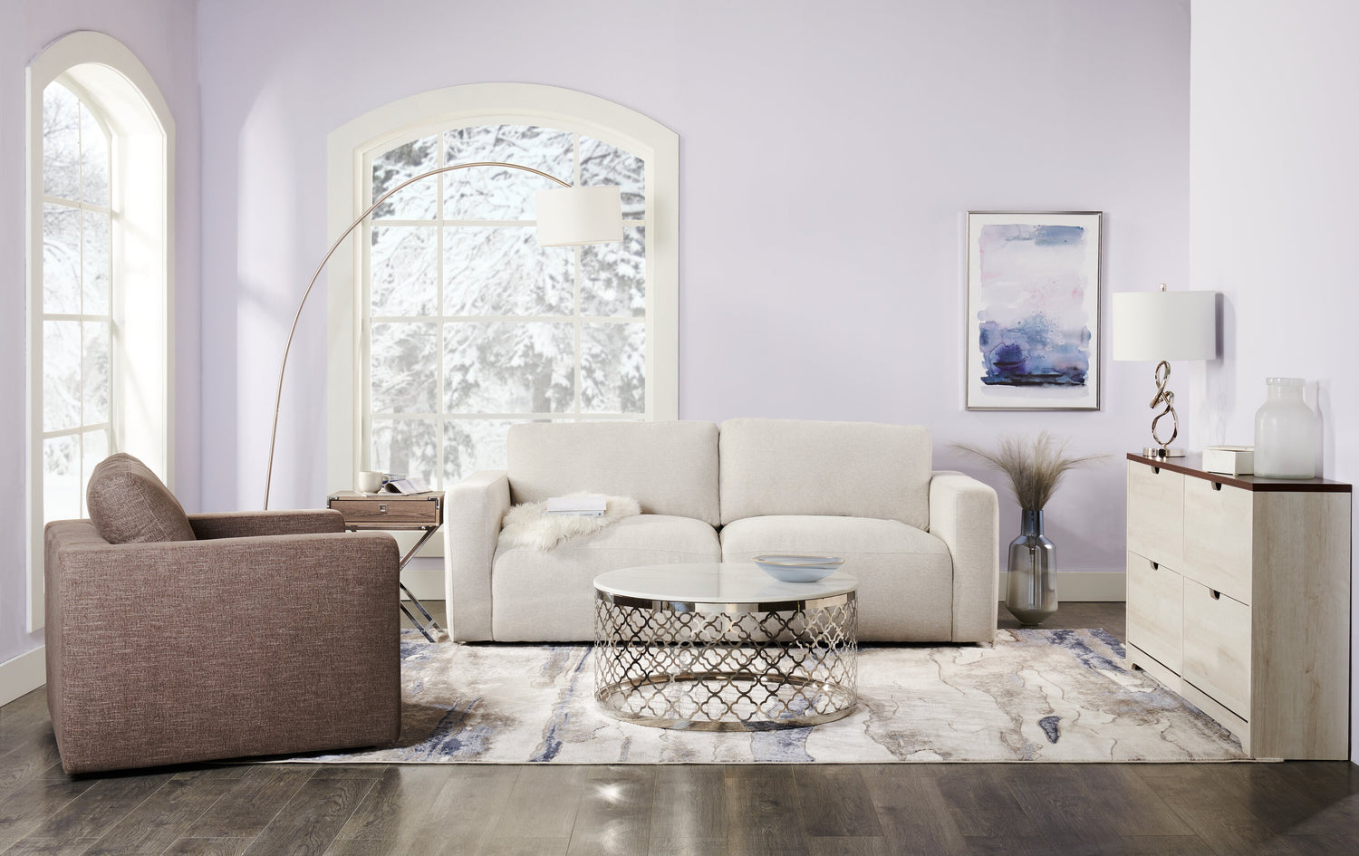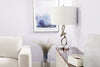Le fini brillant rehausse l'allure moderne de cette lampe de table.