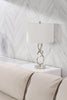 - Un fini en chrome poli s'harmonise parfaitement à l'abat-jour blanc éclatant.