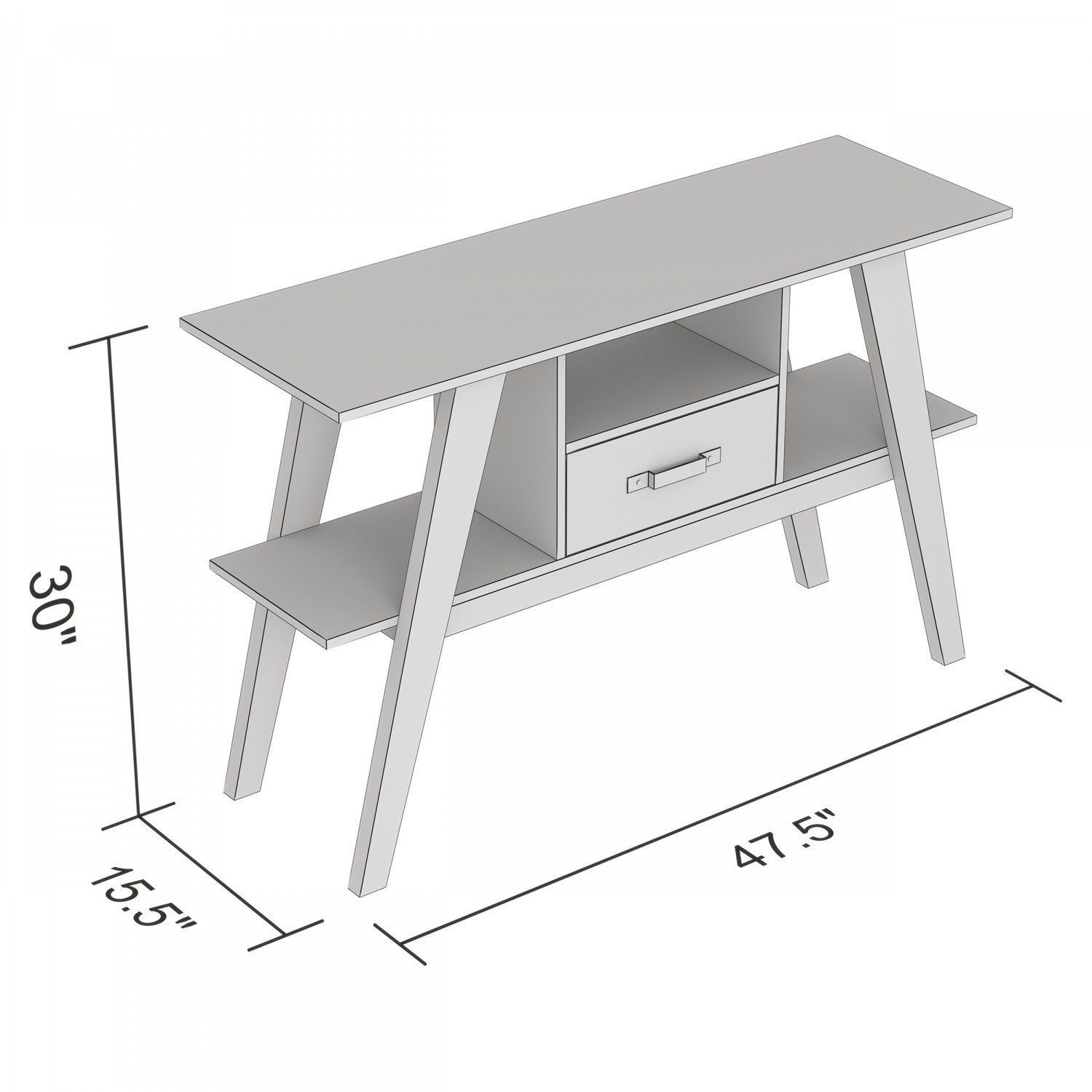 Largeur : 47,5 po (120,7 cm) Hauteur : 30 po (76,2 cm) Profondeur : 15 po (38,1 cm)