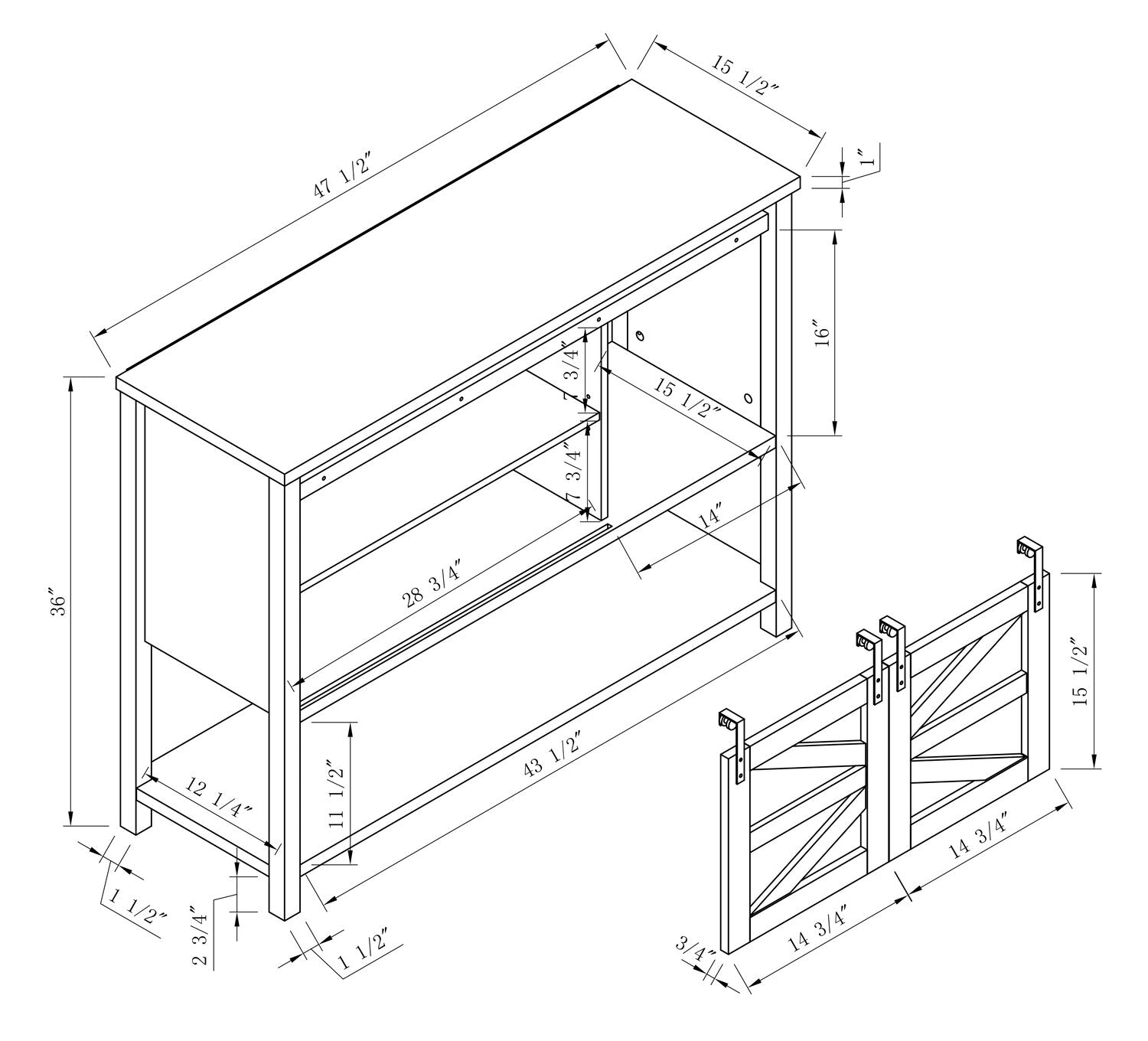 Largeur : 47,25 po (120,0 cm) Hauteur : 36 po (91,4 cm) Profondeur : 15,5 po (39,4 cm)