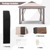 Notre tente gazebo exterieure est concue avec une corniche prolongee pour fournir 121 pieds carres d’ombre. Et il dispose d’un toit a double ventilation, ce qui vous apportera une meilleure ventilation, vous permettant de profiter de la fraicheur dans les chaudes journees d’ete. La tente gazebo est equipee de 4 ecrans en maille avec des portes zippees pour un acces facile et une protection contre les insectes volants. La canopee est faite de tissu de polyester impermeable et resistant a la decoloration, qui est dur. Et le cadre de la tente est fait de tuyau d’acier poudre-enduit, qui est stable et antirouille. Le cadre est pre-assemble, il vous suffit de les derouler, de les mettre sur la canopee et la maille pour obtenir rapidement un abri solaire ideal. En outre, cette tente de gazebo peut ajuster la hauteur de trois vitesses pour repondre a vos differents besoins. En outre, nous fournissons un sac de transport afin que vous puissiez facilement le porter a la plage, arriere-cour, pont, etc. C’est le choix parfait pour les fetes, les diners, les mariages! < br >