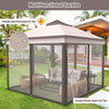 | Renseignements supplémentaires | Couleur: Beige Materiel: tissu de Polyester, tuyau d’acier Dimension hors-tout: 11’x 11’ x 9,5’ (L x L x H) Dimension du sac de transport: 45.5" x 8.5" x 8" (L x W x H) Poids Net: 35 lb < fr > Le forfait comprend: 1 x Gazebo Patio 1 x sac de transport 4 x cables a vent 8 x enjeux 1 x Instruction |