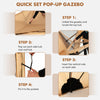Adoptant le tissu de polyester enduit d’pu, notre gazebo pop-up fournit la protection d’ombre UV50+, ainsi vous pouvez profiter des activites en plein air par jours ensoleilles avec notre gazebo exterieur portatif. En outre, ce gazebo de maison d’ecran est couvert de maille sur tous les cotes, de sorte que vous pouvez sentir la brise fraiche a 360° et voir la belle vue sans etre derange par des invites ennuyeux. De plus, nous fournissons 2 chiffons d’ombre supplementaires que vous pouvez installer de n’importe quel cote pour bloquer la lumiere du soleil de differentes directions. Et avec le design pop-up, notre gazebo exterieur peut etre rapidement installe en quelques etapes simples. En outre, les accessoires comprennent 4 cordes a vent et 8 piquets de terre pour ameliorer la resistance au vent. Lorsque vous avez termine le camping, il peut etre rapidement plie et stocke dans un sac fourre-tout pour le stockage. En consequence, notre tente gazebo a 4 cotes est ideale pour le camping, les pique-niques et les barbecues.