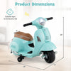 | Renseignements supplémentaires | Color: Green Materials: PP, Metal Product Dimensions: 26" x 15" x 20" (L x W x H) Size of Seat: 10" x 6"(L x W) Net Weight: 10 lbs Max Weight: 55 lbs Suitable Ages: 18-36 Months Old Motor: 6V, 30W Battery: 6V, 4AH Speed: 1.6 mph Charger Input: AC120V, 0.2A, 60Hz Package Includes: 1 x Kids Ride on Motorcycle 1 x Charger 1 x User Guide |