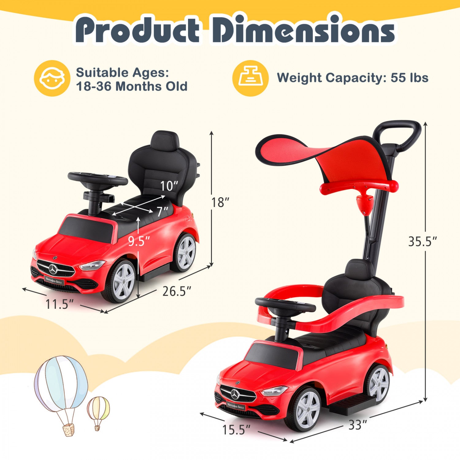 Mettez votre enfant dans un monde de luxe et de plaisir avec cette voiture poussee sous licence Mercedes-Benz dotee d'un design multifonctionnel 3 en 1.