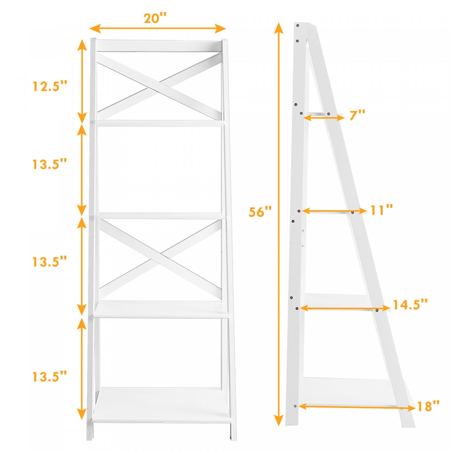 | Key Features | Application large et multifonction, adapte a la maison et au bureau Etageres a 4 niveaux de differentes hauteurs offrant un grand espace de rangement Fabrique en panneau MDF de haute qualite, ecologique et durable Structure stable et robuste avec une capacite de charge de 5 kg sur chaque etagere Style moderne avec modelisation en forme de A, convenant a la plupart des decors Surface de peinture-pulverisation pour une meilleure couleur et texture, preuve de l'eau Facile a nettoyer et a entretenir, facile a assembler |