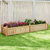 Ce lit de jardin en bois sureleve mesure 91" x 24" x 16" (L x L x H) et les mesures interieures 87" x 20,5" x 11" (L x L x H). Il dispose de 2 grandes boites de plante, vous permettant de cultiver une variete de plantes simultanement. En outre, il y a des trous de drainage et des interferences sur le fond, ce qui peut efficacement empecher l'accumulation d'eau et proteger les plantes de la pourriture ou du trop-sechage. Plus que cela, le planteur est fabrique a 100% de bois de sapin naturel, qui est resistant aux deformations, aux intemperies, ce lit de jardin serait donc un choix parfait pour tout jardinage interieur et exterieur. En outre, il est livre avec une doublure de lit de jardin supplementaire, fournissant une couche supplementaire de protection pour votre lit de jardin, assurant sa longevite et sa durabilite. Il peut non seulement fournir de bonnes conditions pour la croissance des plantes, mais aussi apporter de la commodite pour leur gestion.