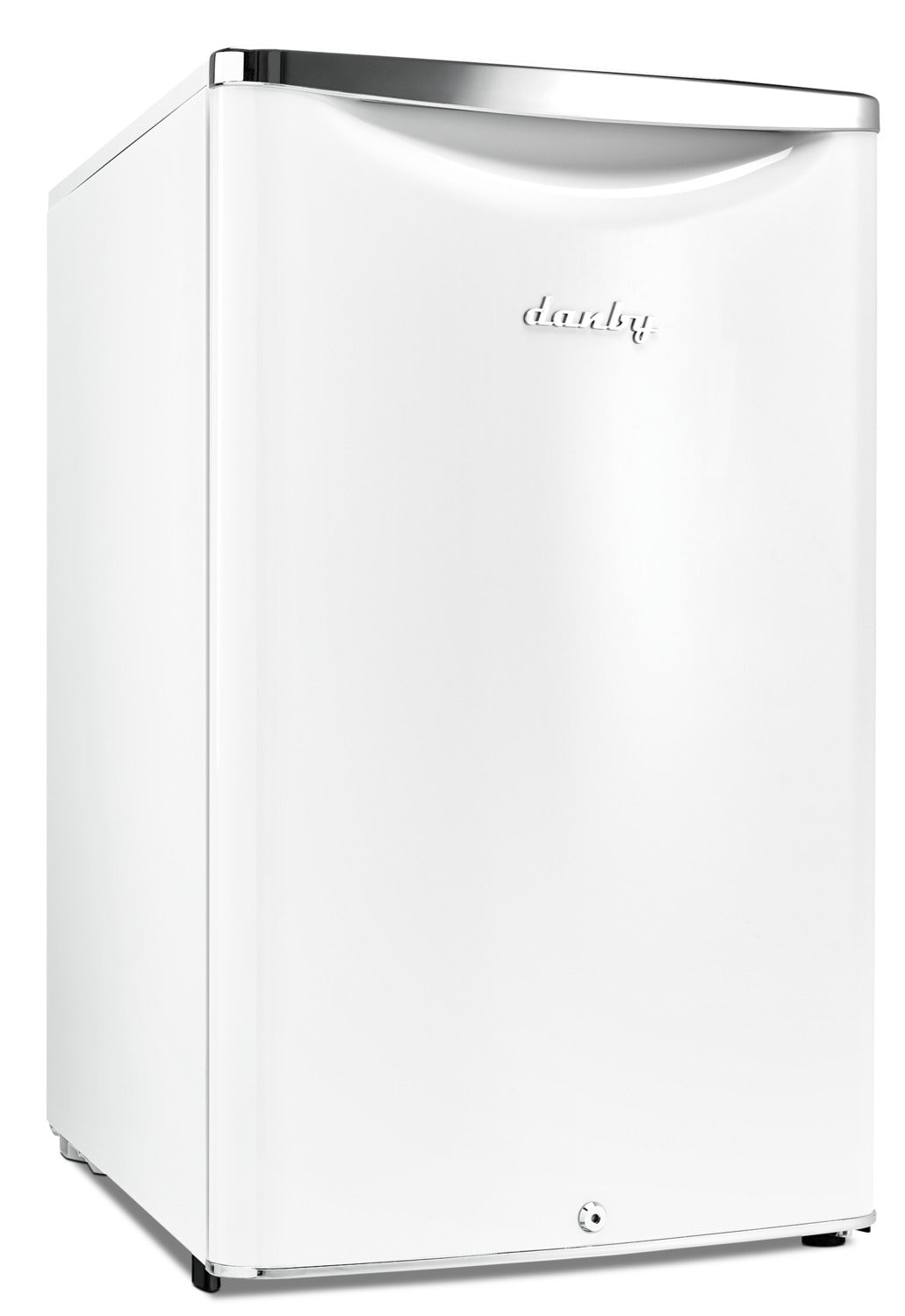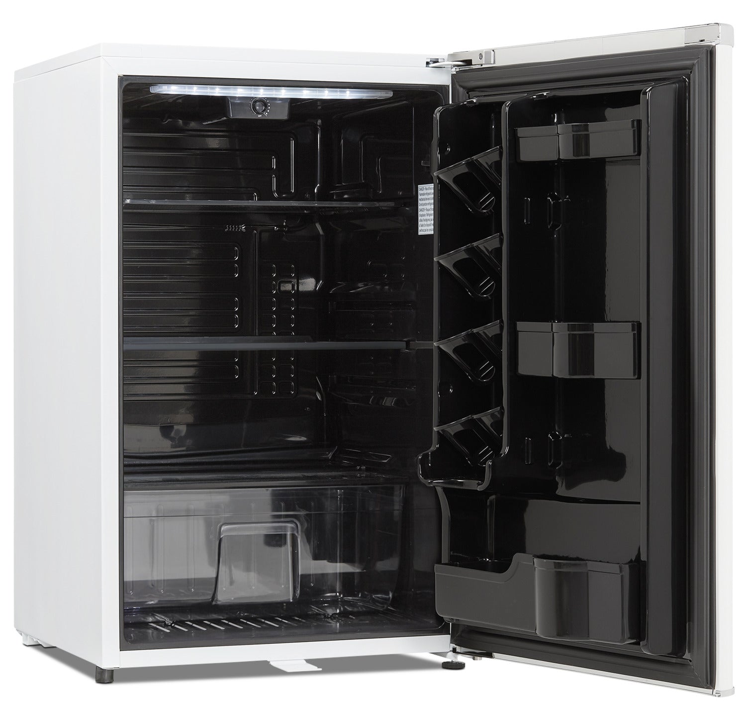 Dessus fini chromé résistant aux égratignures: Trois tablettes en verre pleine largeur et trois tablettes de porte: Charnières de porte réversibles: Bac à légume transparent: |