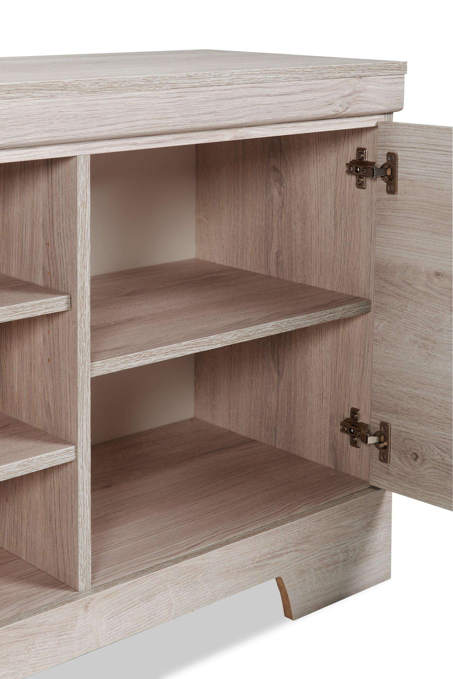 | Options de rangement | 3 tablettes ouvertes et 4 tablettes derrière des portes d’armoire. |