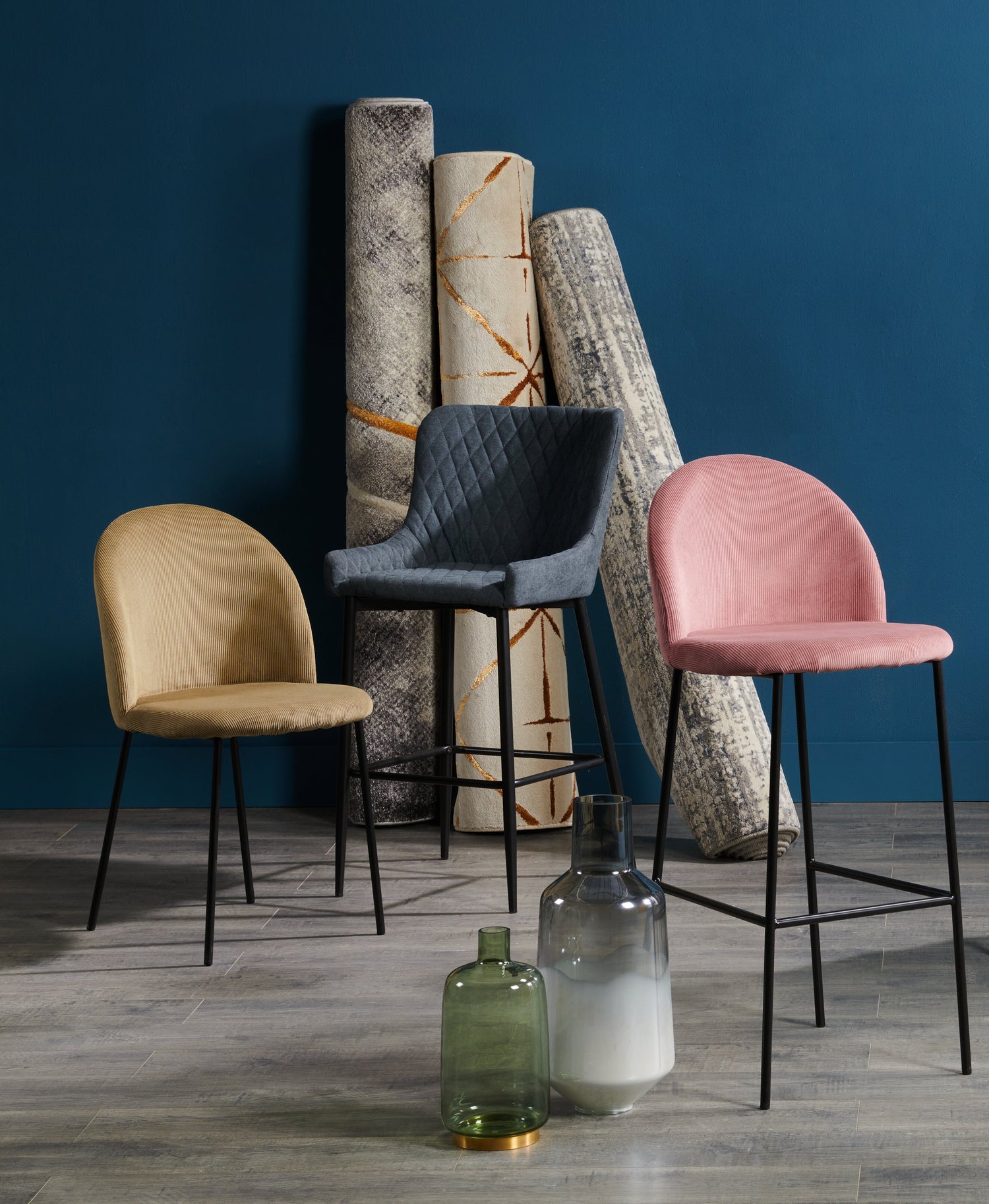 Tabouret Demi de hauteur comptoir en tissu d’apparence velours et en métal - gris