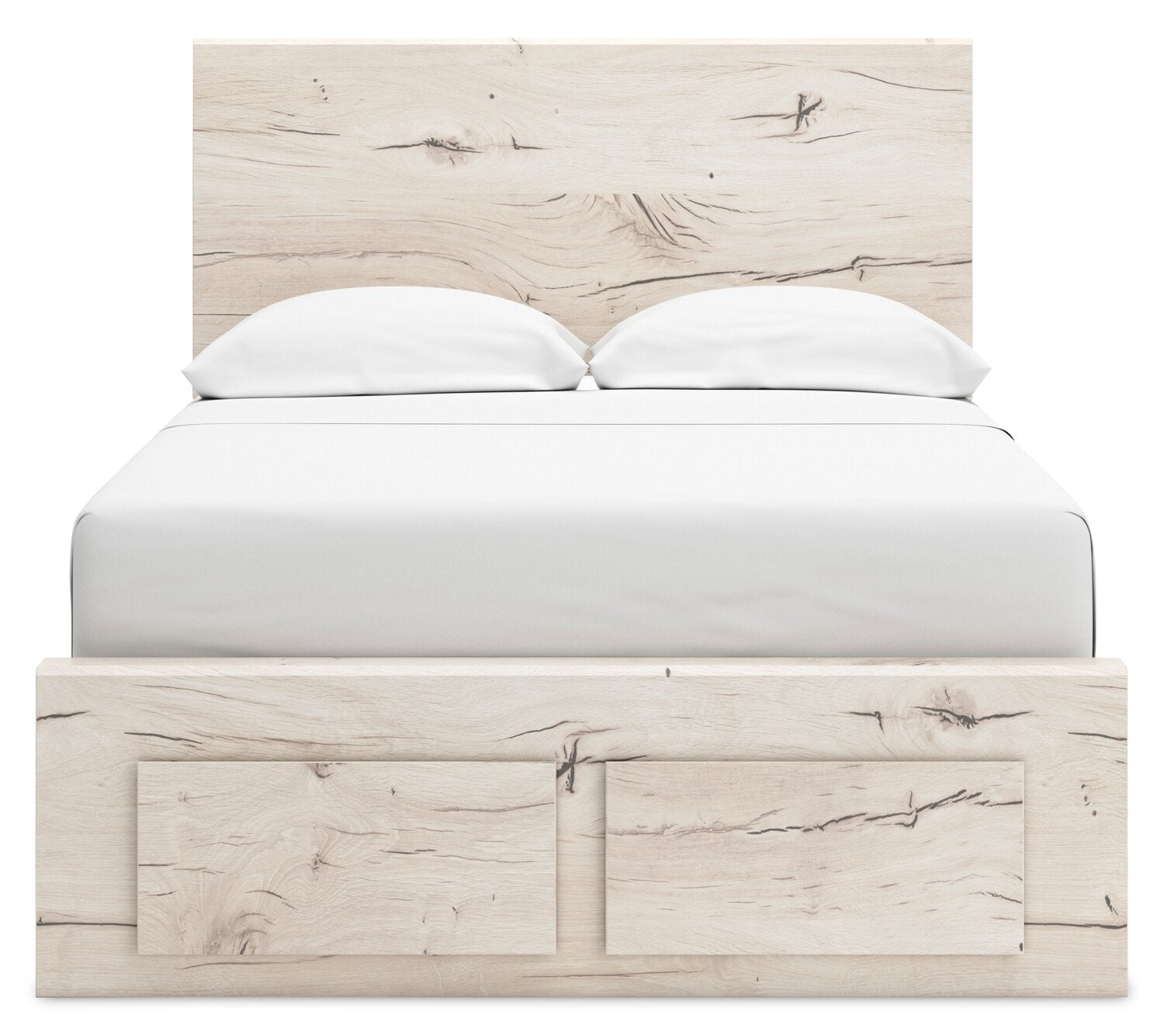 Lit de rangement Derekson blanc rustique avec 2 tiroirs intégrés au pied du lit - format lit double