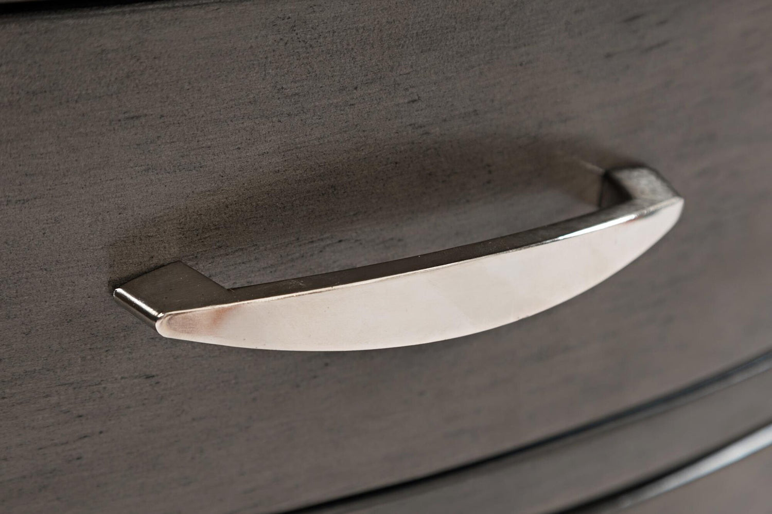 | Quincaillerie | Poignées en nickel brossé: Cette superbe quincaillerie ajoute des nuances élégantes à ce meuble; le jumelage parfait pour ce fini lustré. |