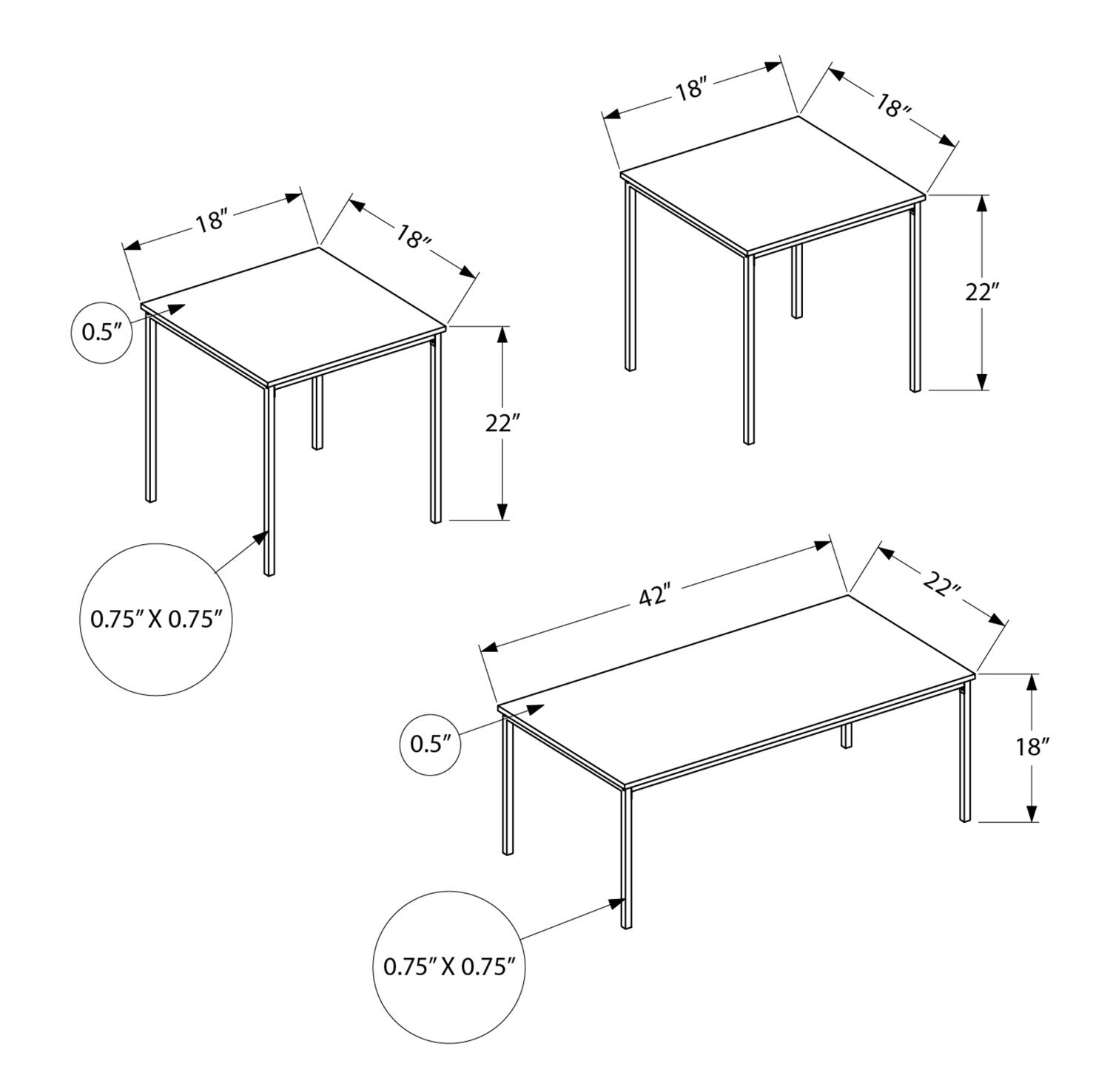 | Dimensions de l'ensemble | 3 pièces |