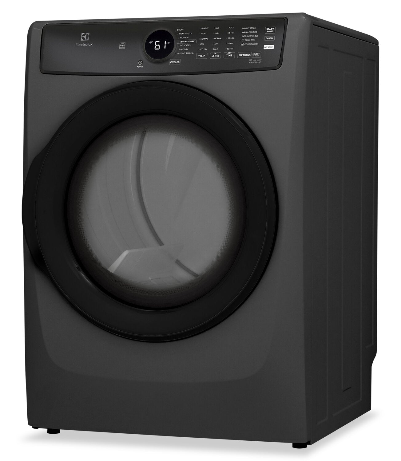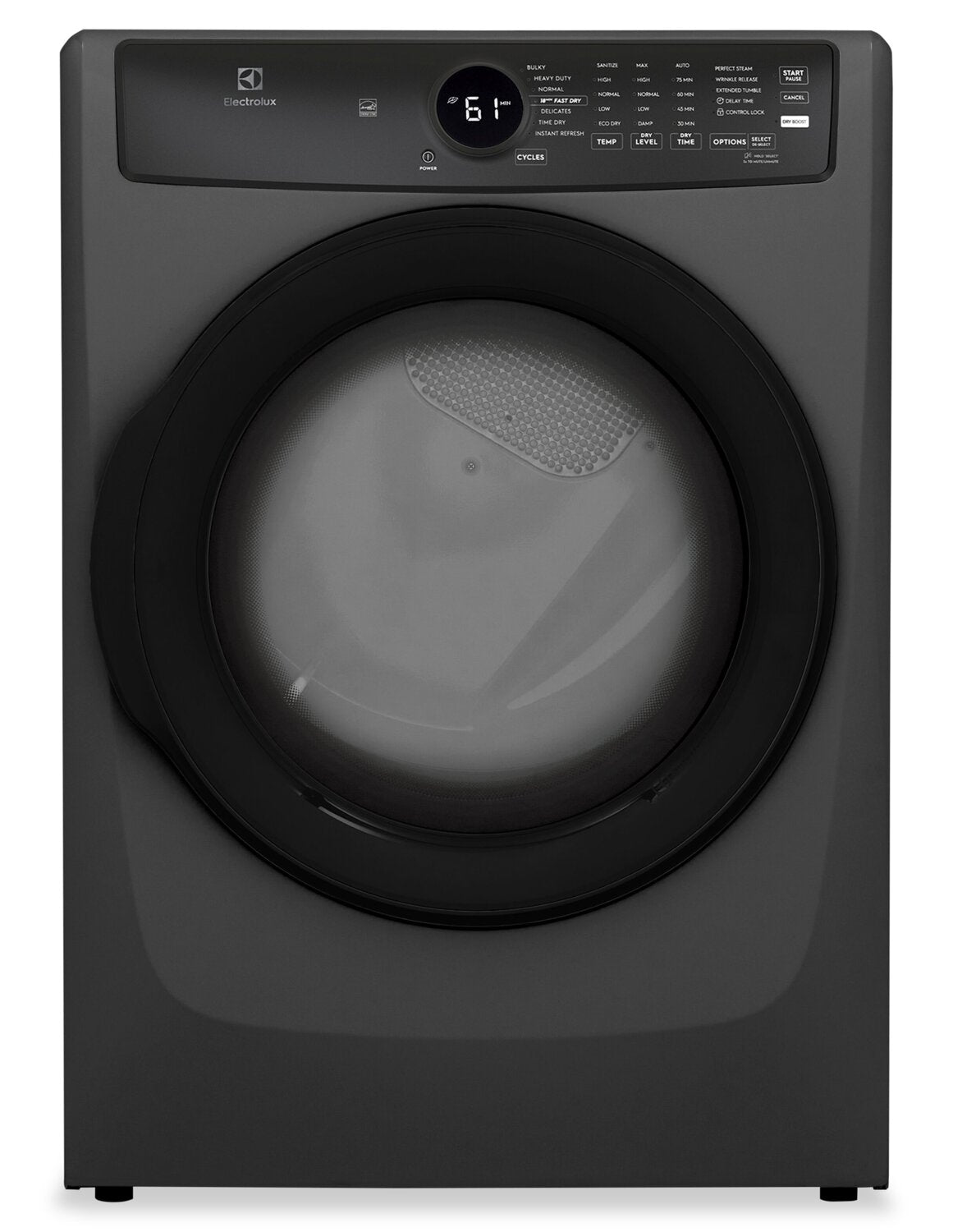 | Options de séchage | Démarrage différé (1 à 12 heures), éclairage du tambour, séchage ajouté, culbutage prolongé, Perfect SteamMC, élimination des plis |