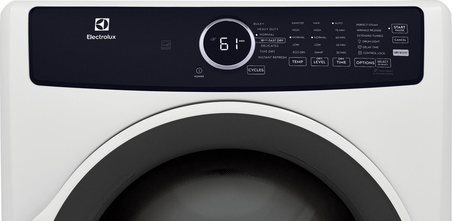| Options de séchage | Démarrage différé (1 à 12 heures), séchage ajouté, culbutage prolongé, Perfect SteamMC, élimination des plis |