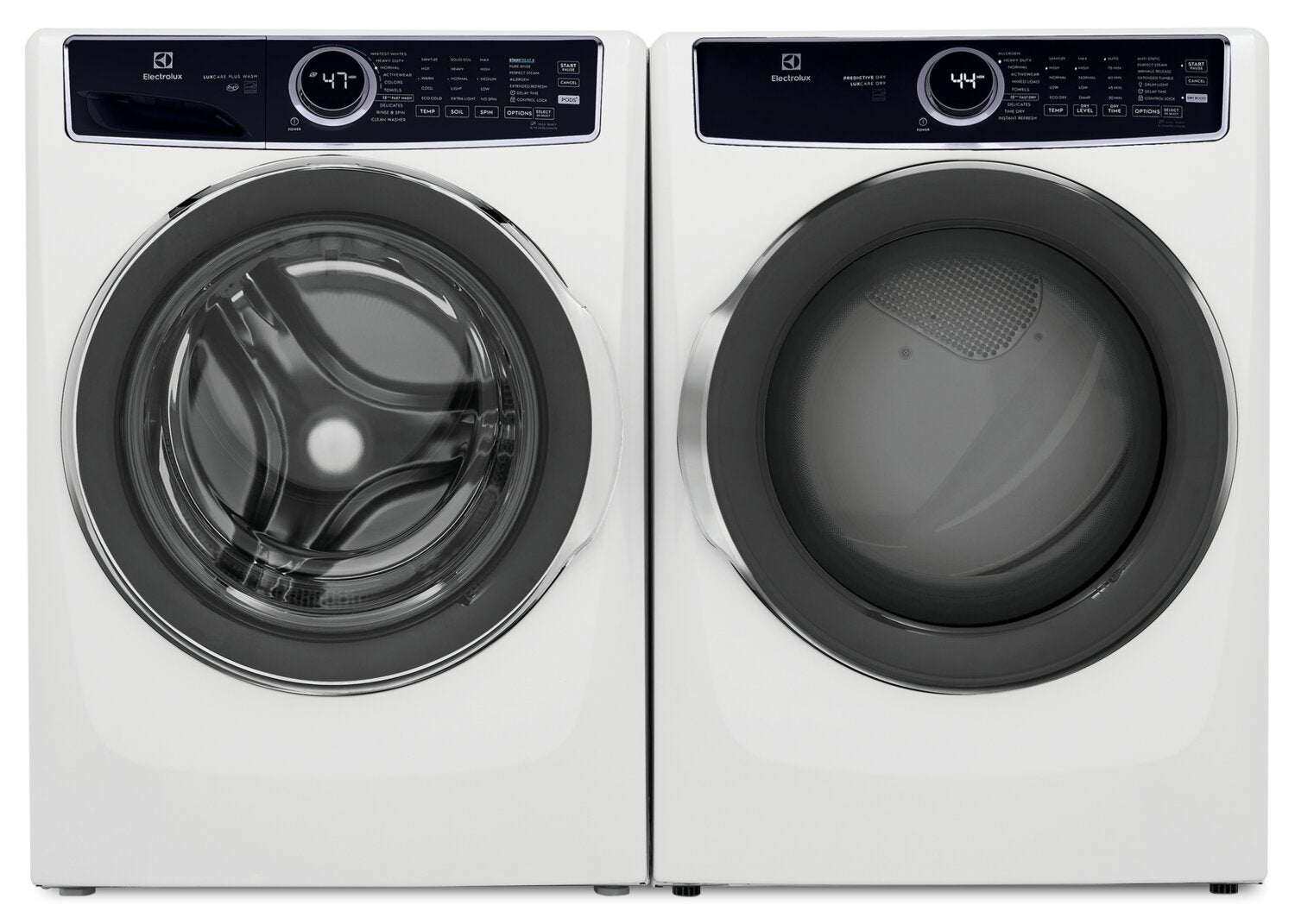 | Vendu séparément | Sécheuse électrique (ELFE753CAW), sécheuse à gaz (ELFG7537AW), piédestal de rangement (EPWD257UIW), ensemble de superposition optionnelle (STACKIT7X) |