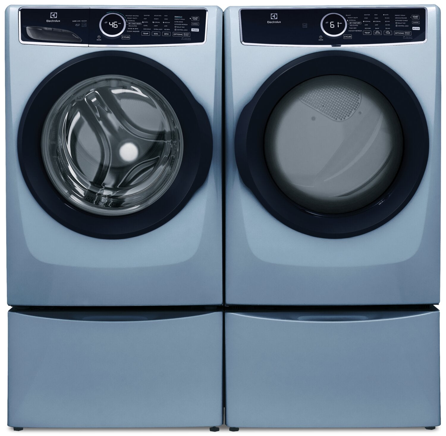 | Options de séchage | Démarrage différé (1 à 12 heures), éclairage du tambour, séchage ajouté, culbutage prolongé, Perfect SteamMC, élimination des plis |