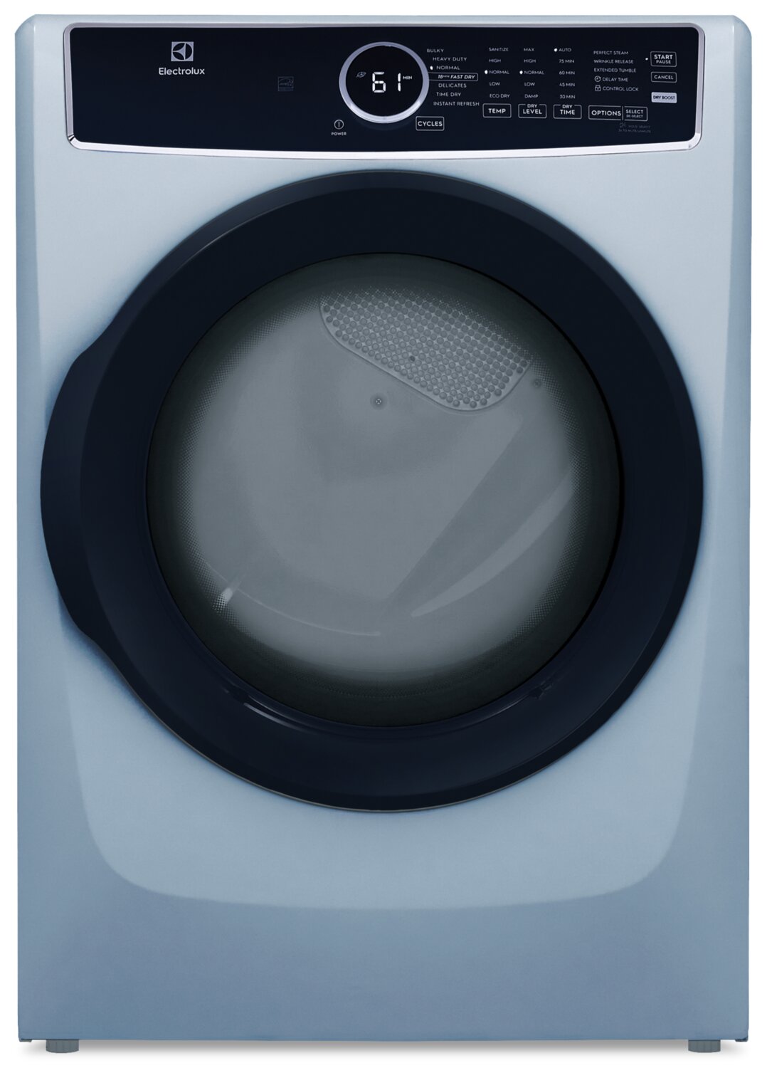 | Options de séchage | Démarrage différé (1 à 12 heures), séchage ajouté, culbutage prolongé, Perfect SteamMC, élimination des plis |