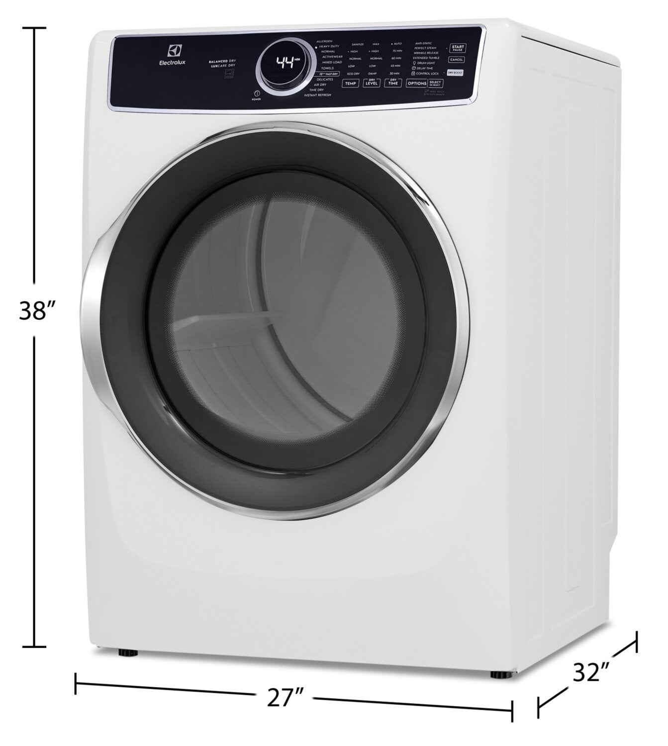 Système de séchage LuxCareMD : Fonction de séchage Predictive DryMC : Cycle de rafraîchissement instantané : Installation polyvalente : Séchage rapide en 15 minutes : Option à la vapeur Perfect SteamMC : Écologique : |