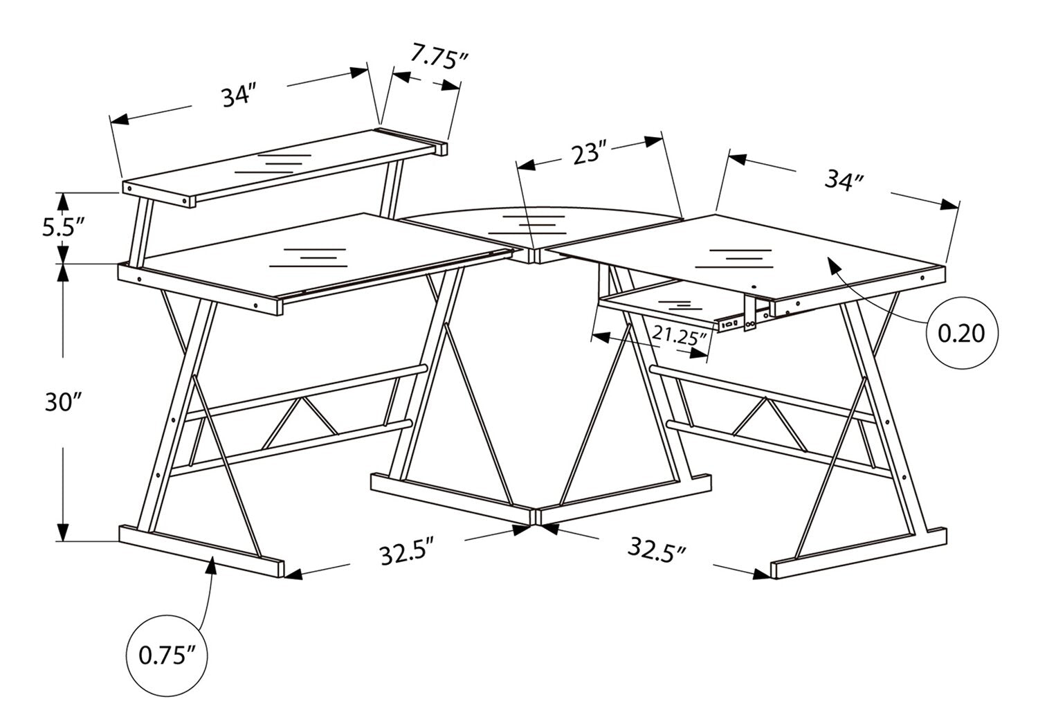 Largeur : 32 po (81,3 cm) Hauteur : 9 po (22,9 cm) Profondeur : 20 po (50,8 cm)