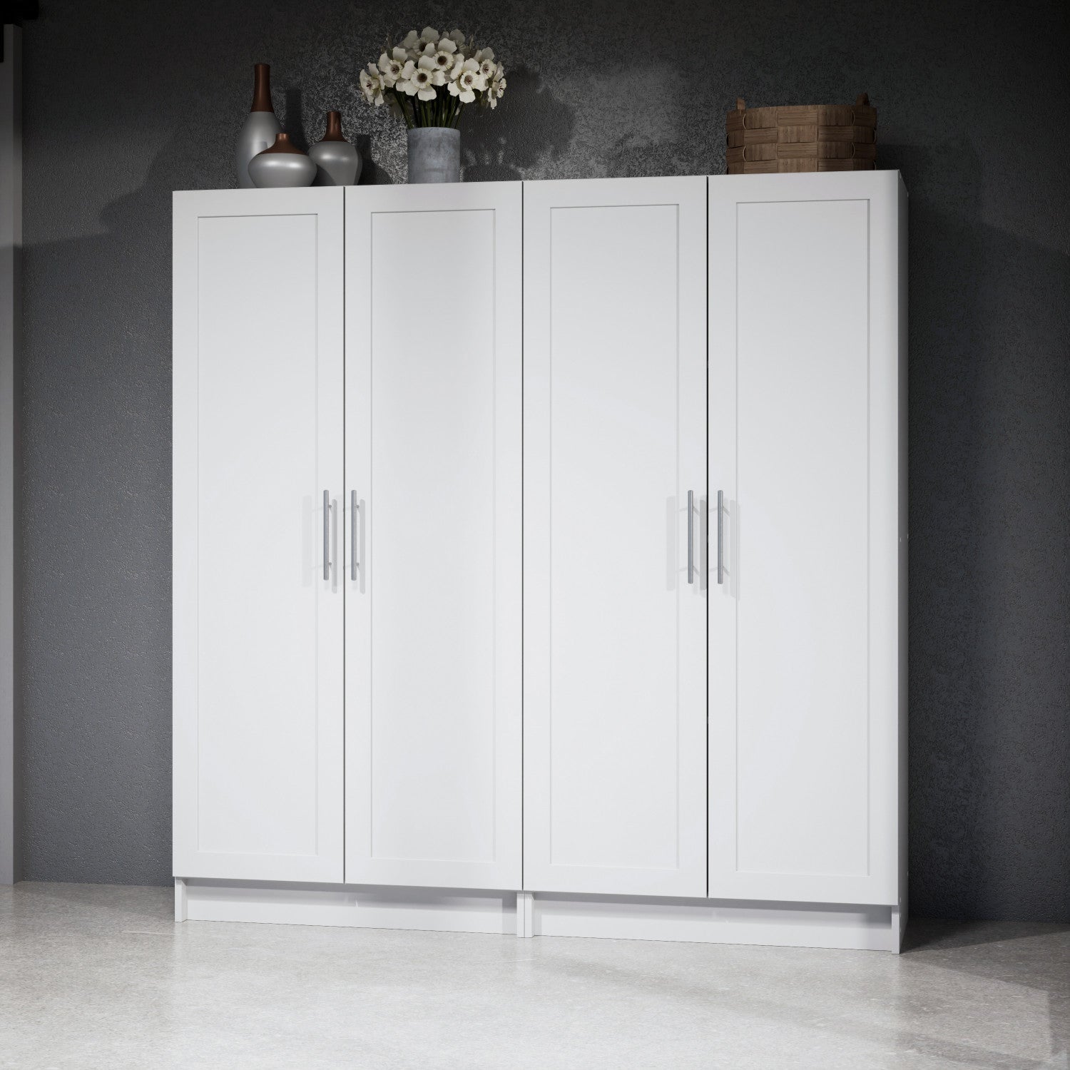 Armoire d’appoint de rangement Elite avec portes à panneaux et 3 tablettes - blanche