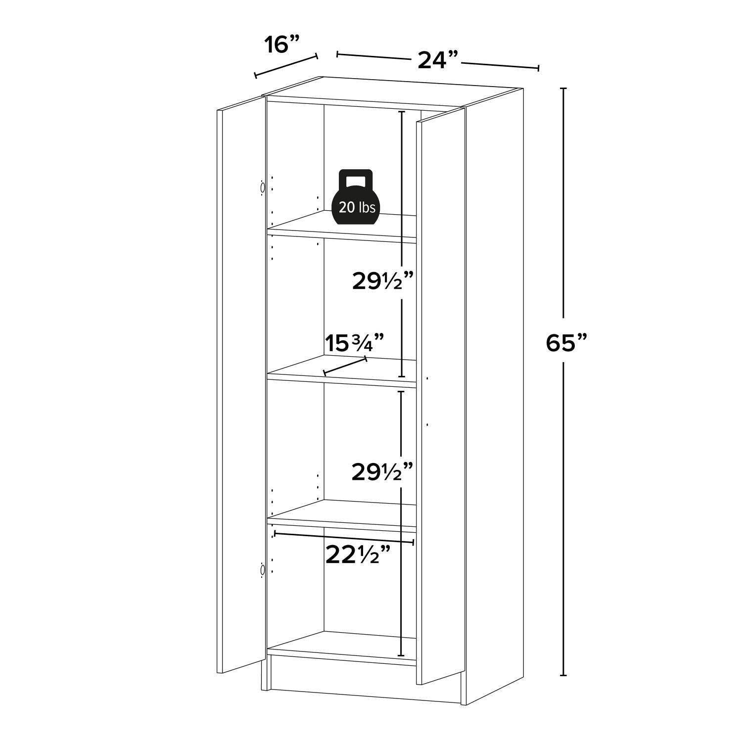 Largeur : 24 po (61,0 cm) Hauteur : 65 po (165,1 cm) Profondeur : 16 po (40,6 cm)