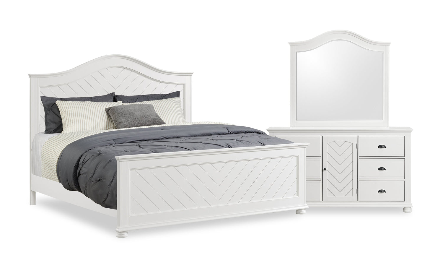 | Vendu séparément | La commode, la commode verticale, la table de nuit et le miroir Ella assortis. |