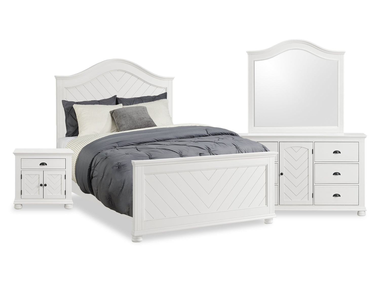 Lit à panneaux Ella avec tête de lit, cadre et motif de chevrons, blanc - format lit double