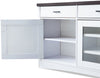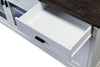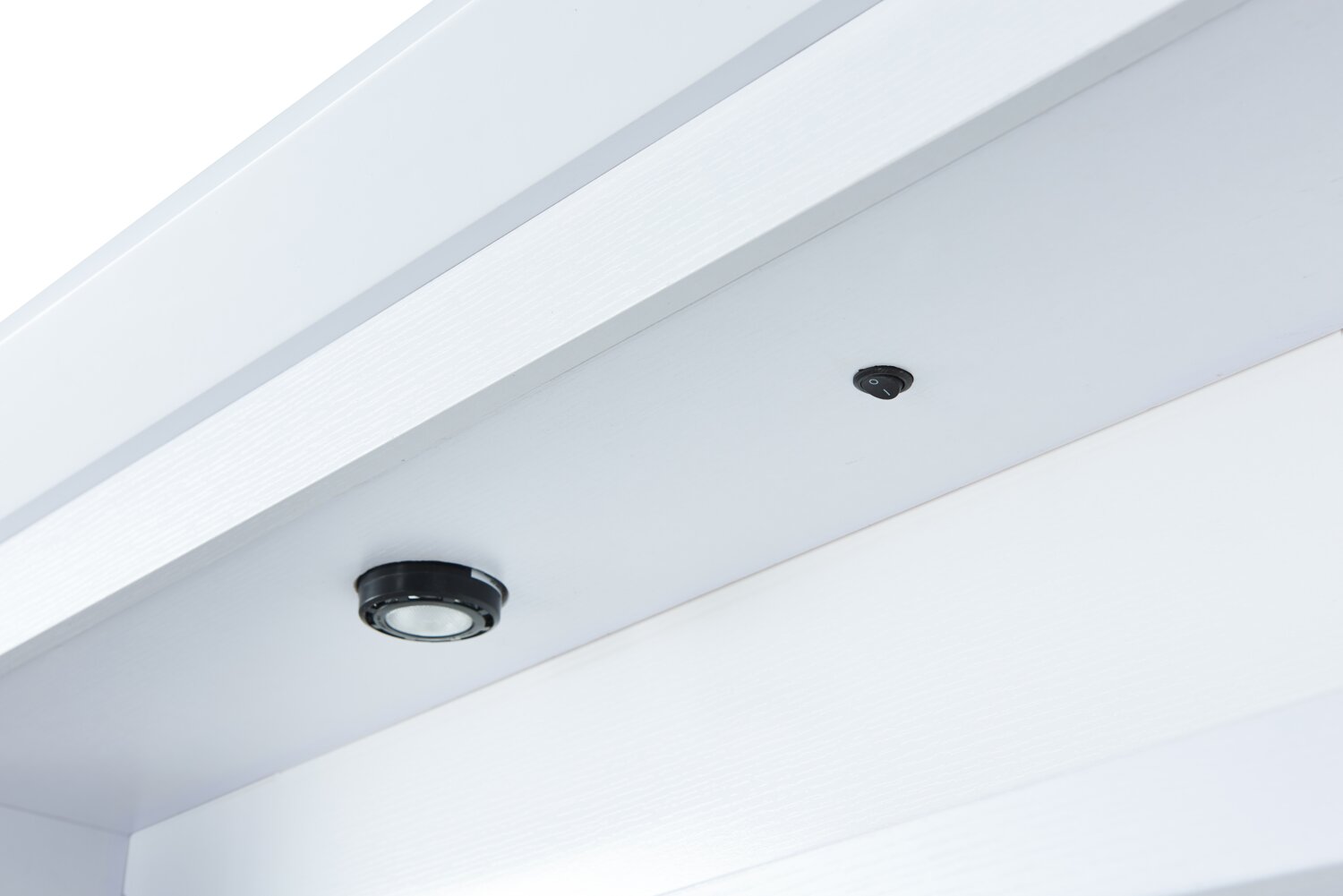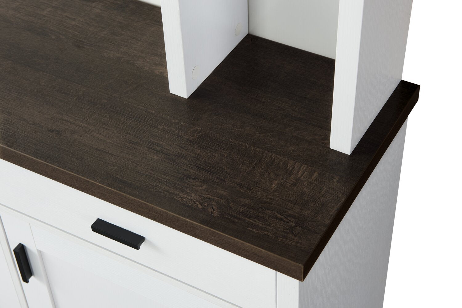| Détails décoratifs | D’épaisses tablettes brunes confèrent un contraste rustique avec le fini blanc. |