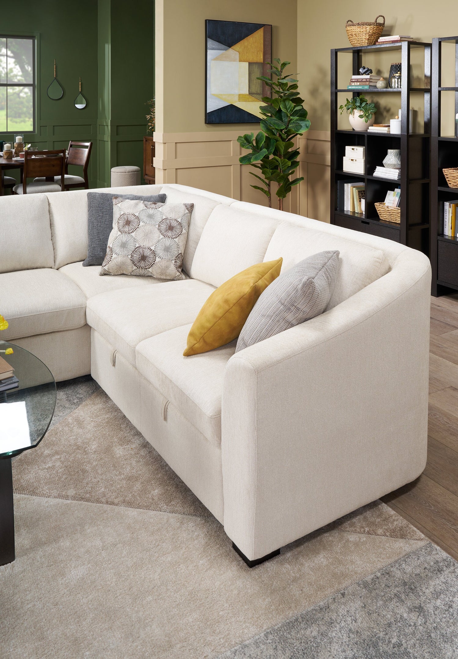 | Détails décoratifs | Les accoudoirs inclinés et les coins arrondis confèrent une apparence unique à ce meuble. |