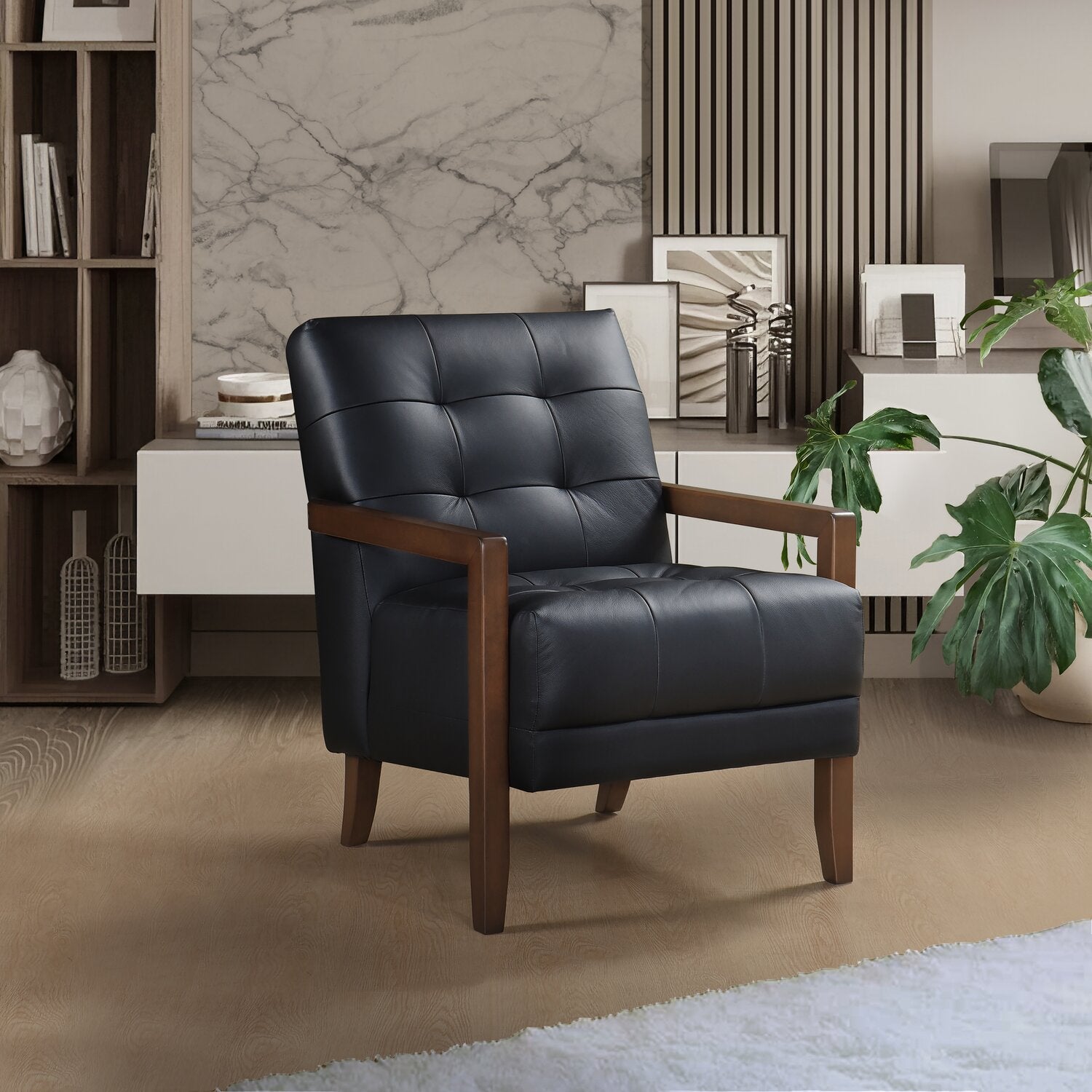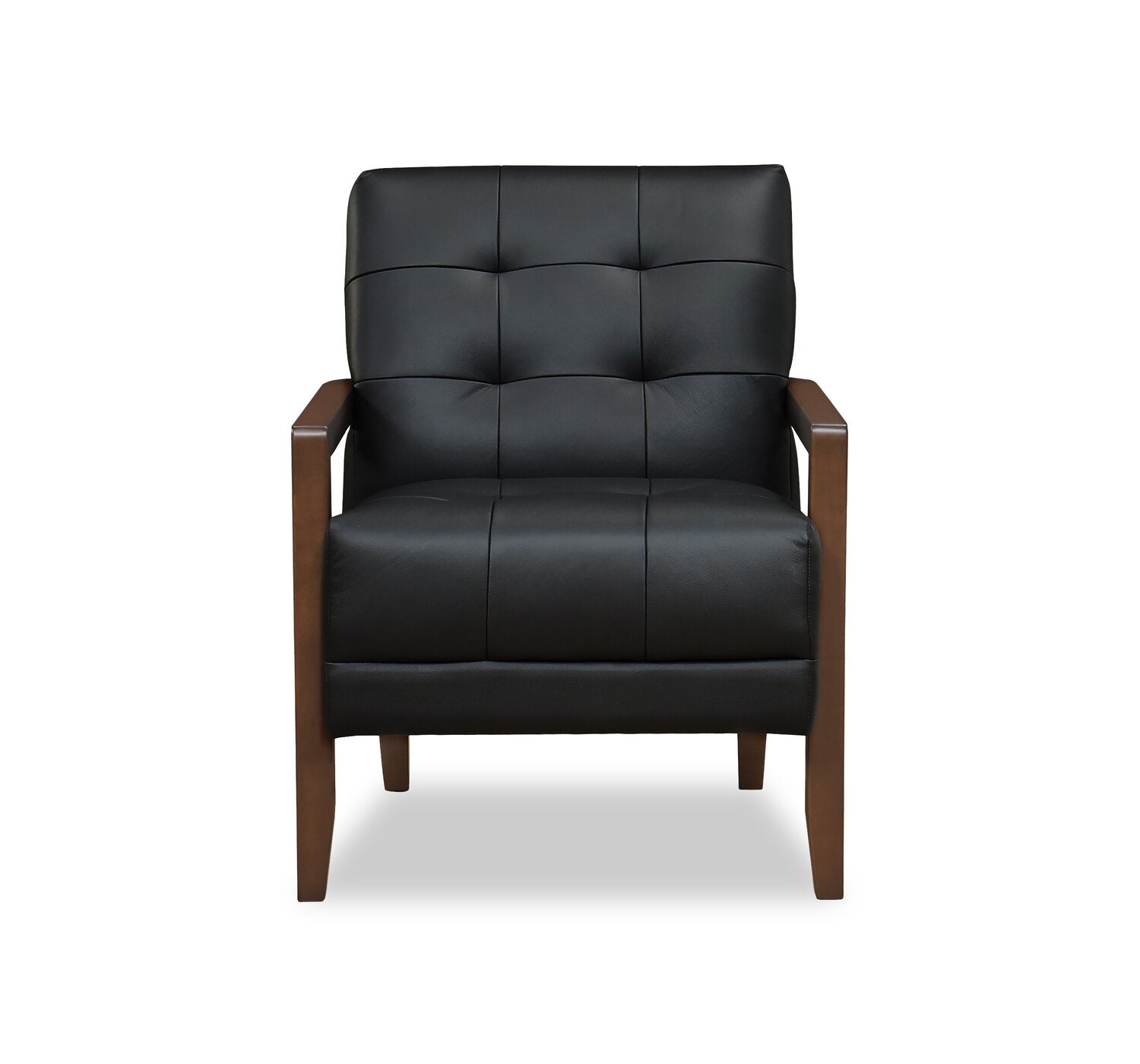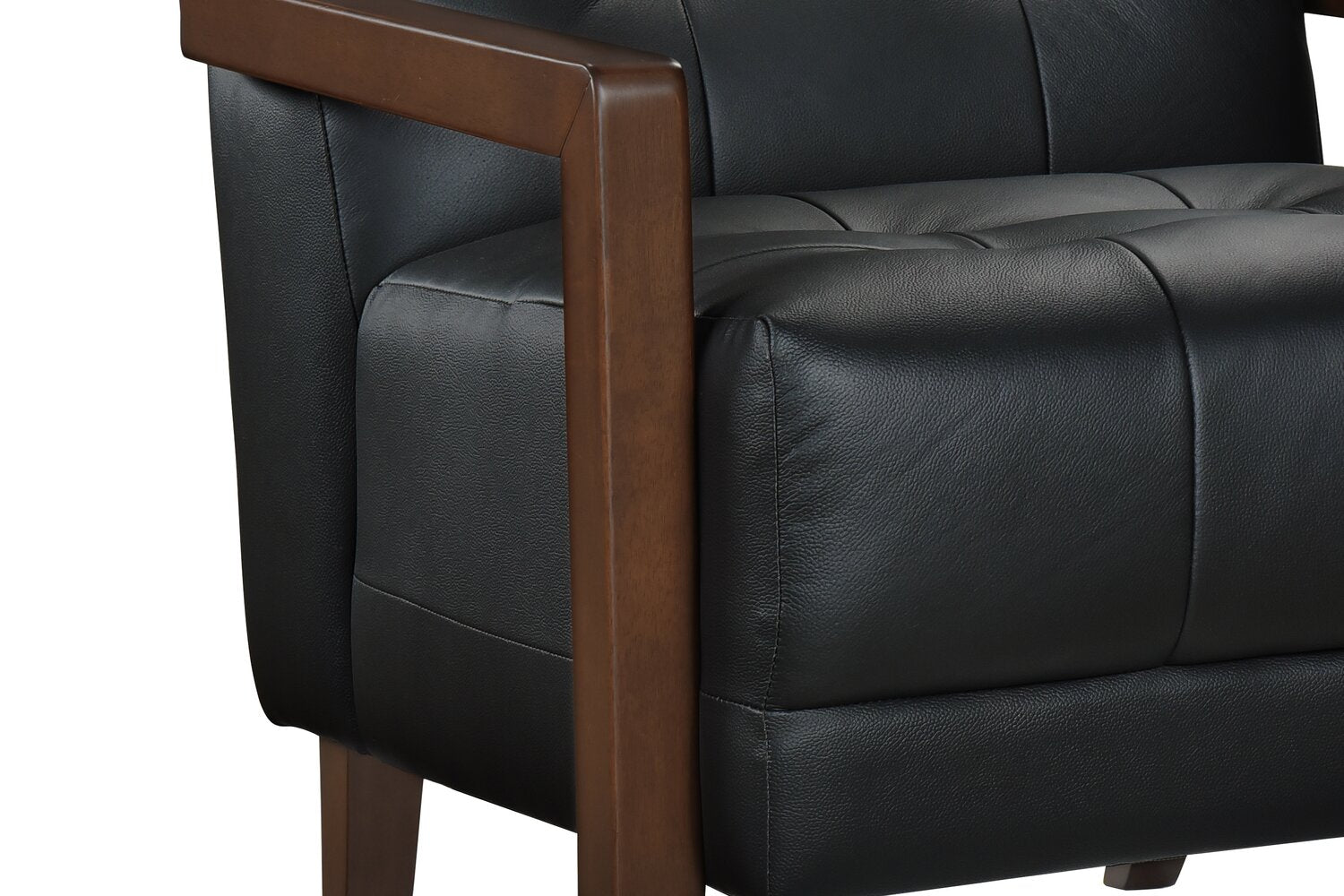 | Détails décoratifs | Le capitonnage en biscuit rehausse les coussins moelleux, tandis que les accoudoirs rectilignes carrés à armature ouverte en bois complètent le revêtement en cuir véritable pour créer une présentation raffinée. |