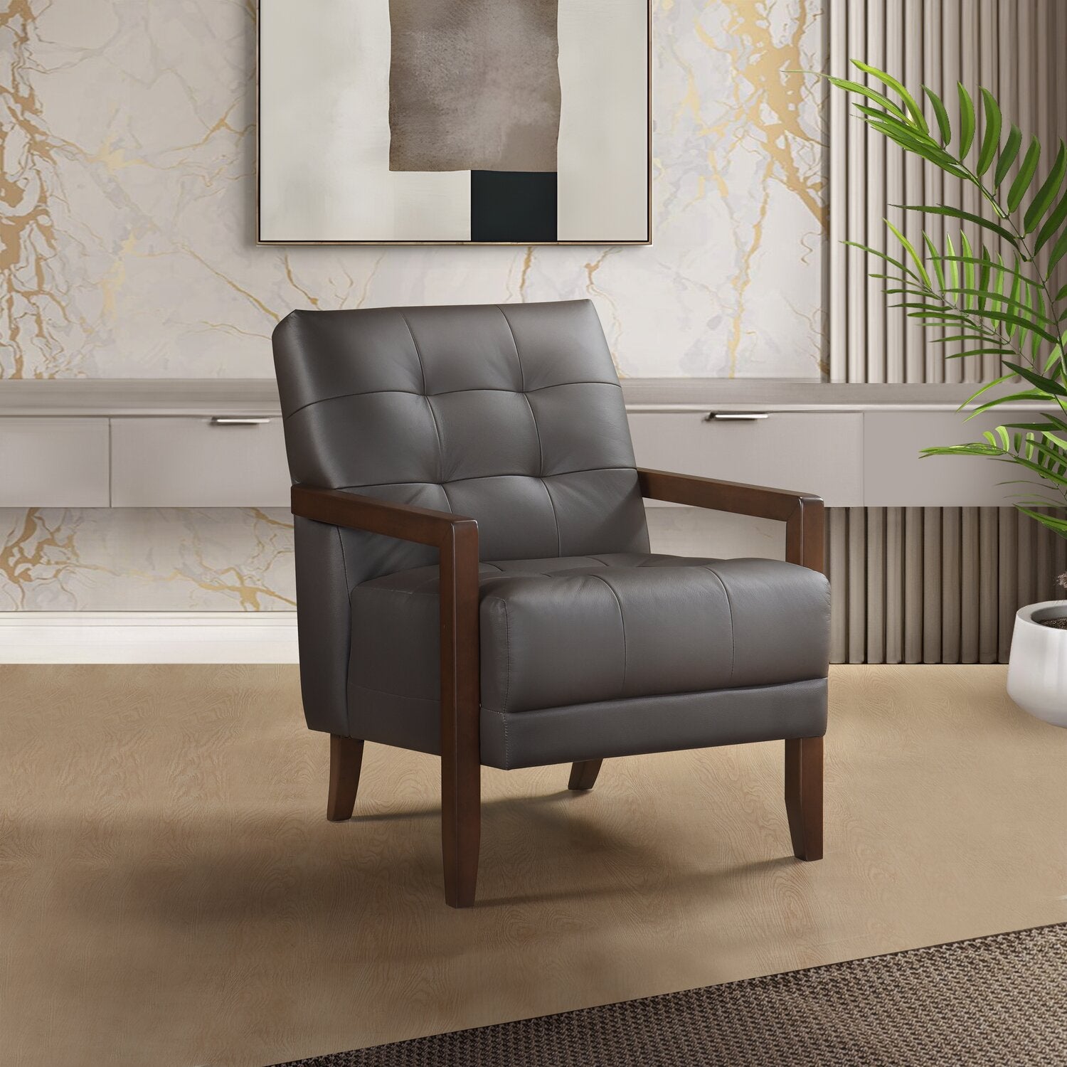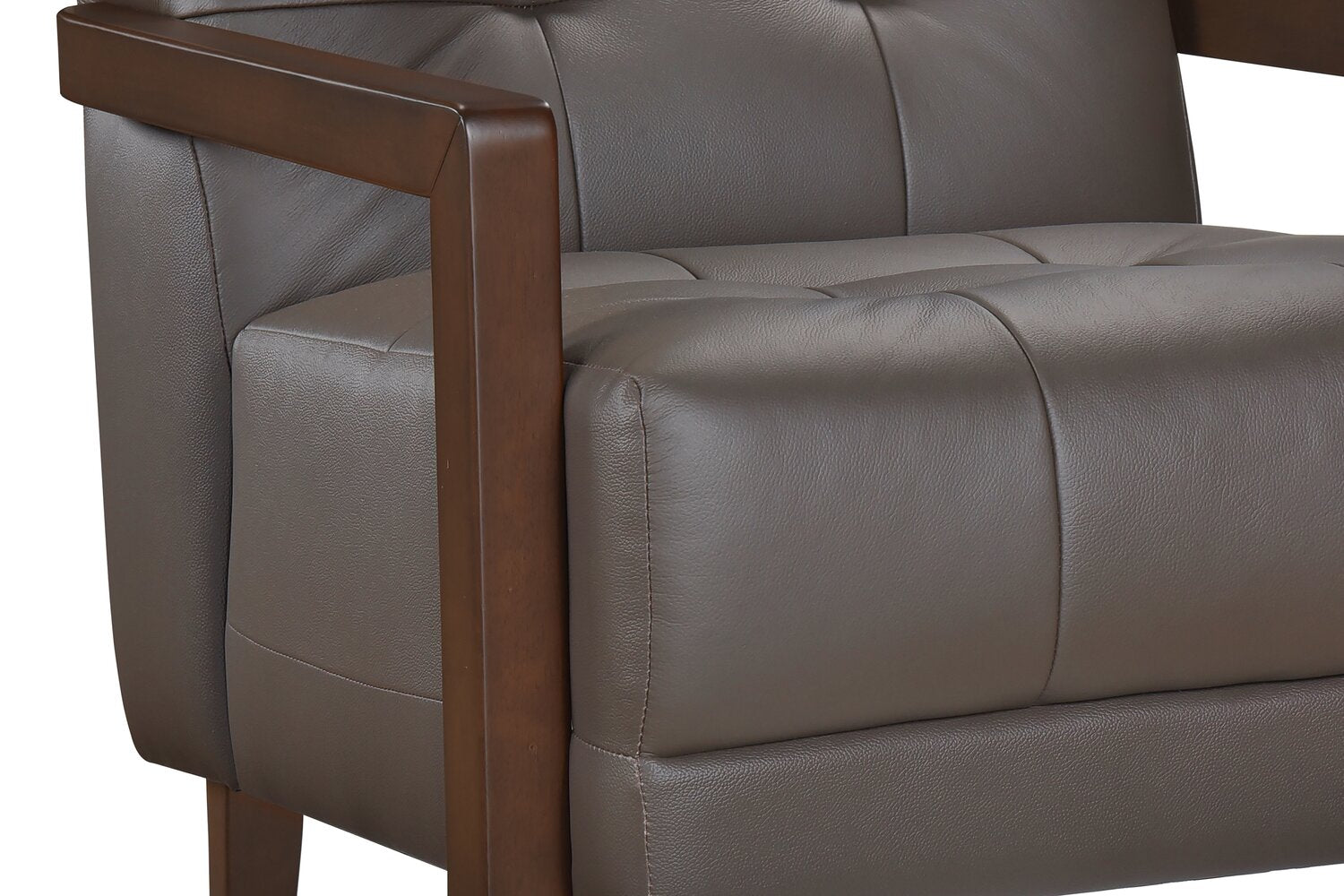 | Détails décoratifs | Le capitonnage en biscuit rehausse les coussins moelleux, tandis que les accoudoirs rectilignes carrés à armature ouverte en bois complètent le revêtement en cuir véritable pour créer une présentation raffinée. |