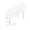 | Mode de fixation de la tête de lit | Fixez la tête de lit à une armature de lit standard en métal à l'aide de traverses boulonnées. |