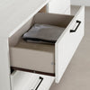 | Quincaillerie | Quincaillerie en métal noir sur les tiroirs. |