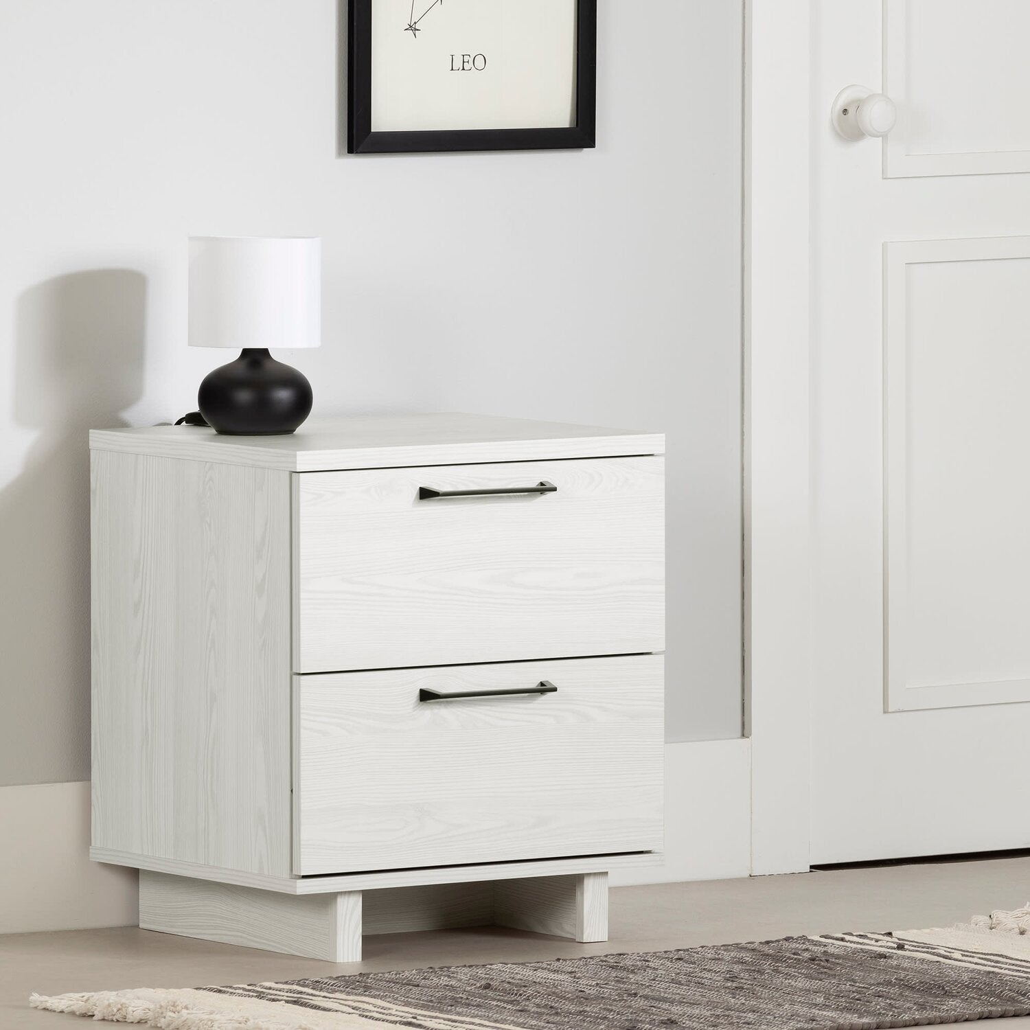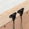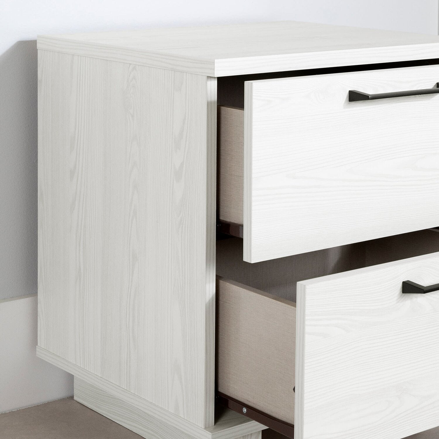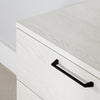 | Quincaillerie | Poignées en métal noir sur les tiroirs. |