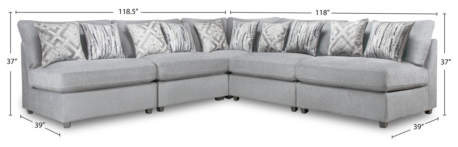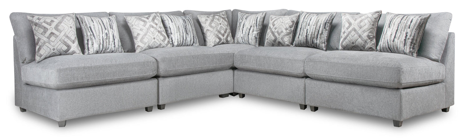 Sofa sectionnel sans accoudoirs modulaire Evolve de Scott Living 5 pièces en tissu d’apparence lin avec coussins en duvet et plumes - gris