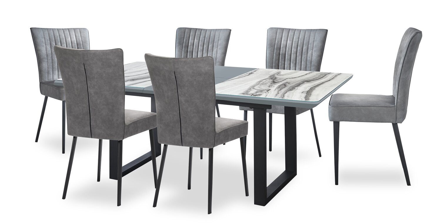 Ensemble de salle à manger Ezra 7 pièces avec table qui s’allonge de 63 po à 79 po (L) et 6 chaises - imitation de marbre blanc et gris