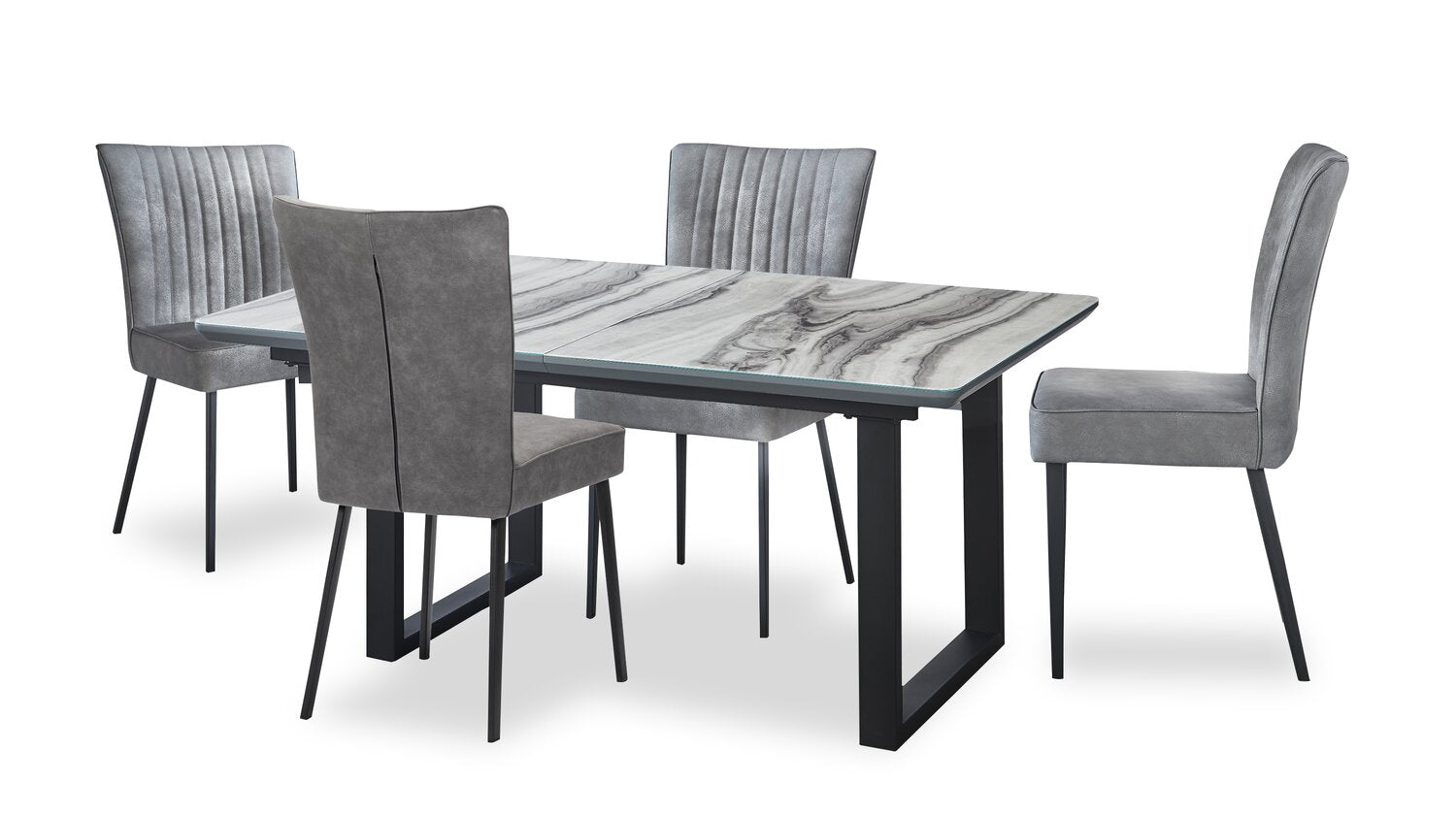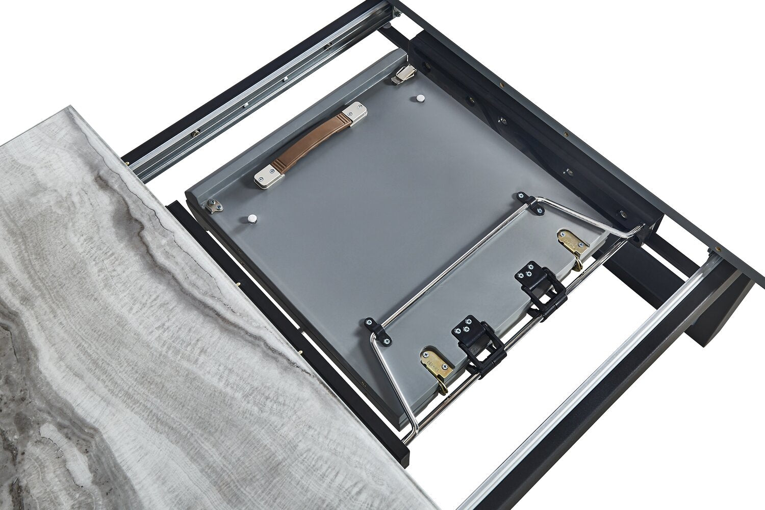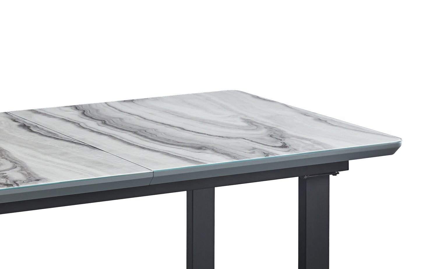 | Détails décoratifs | Le dessus de table en imitation de marbre et les pattes noires à armature ouverte présentent un style contemporain. |