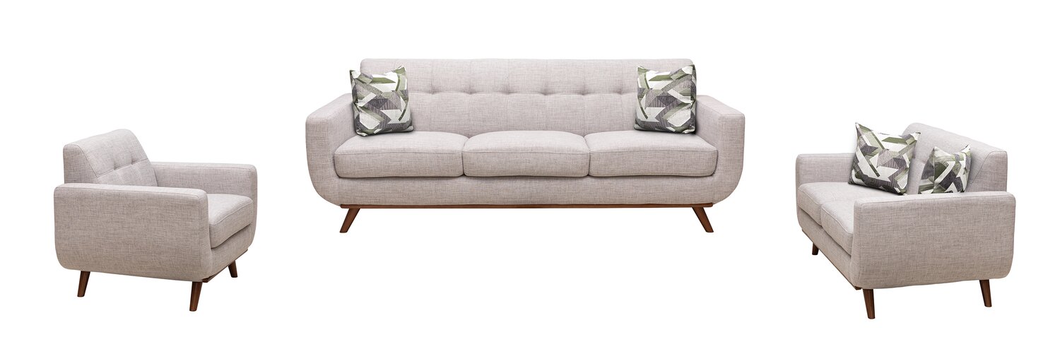| Détails décoratifs | Les coussins de dossier capitonnés et la base de siège arrondie sont chic et arborent une apparence unique. De plus, les pattes effilées en bois complètent le revêtement à merveille. |