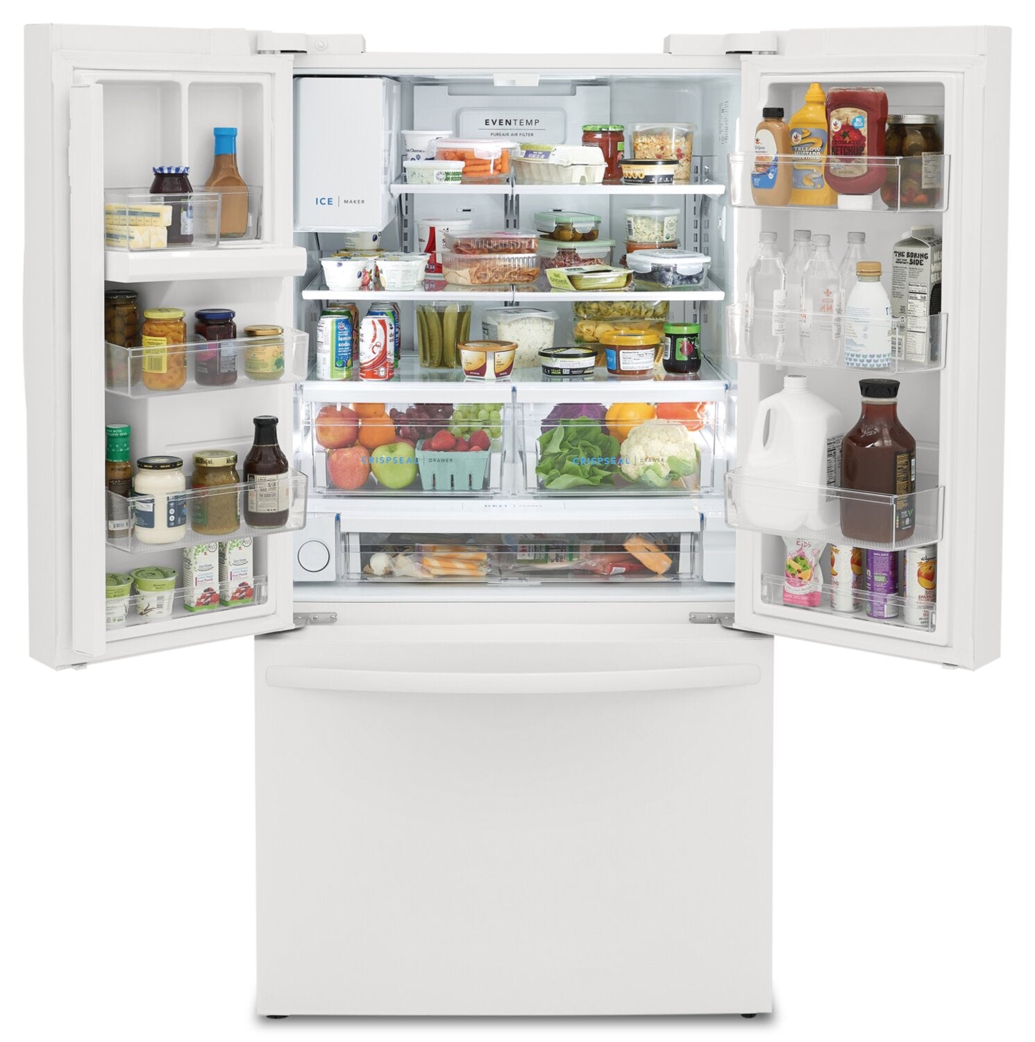 Bacs à légumes CrispSealMD : Grand bac de rangement dans la porte : Filtre à eau PurePourMC : Portes à fermeture automatique : Système de refroidissement EvenTempMC : Tiroir à charcuteries pleine largeur : Système de filtration d'air PureAir UltraMD II : Appareil homologué ENERGY STARMD : |