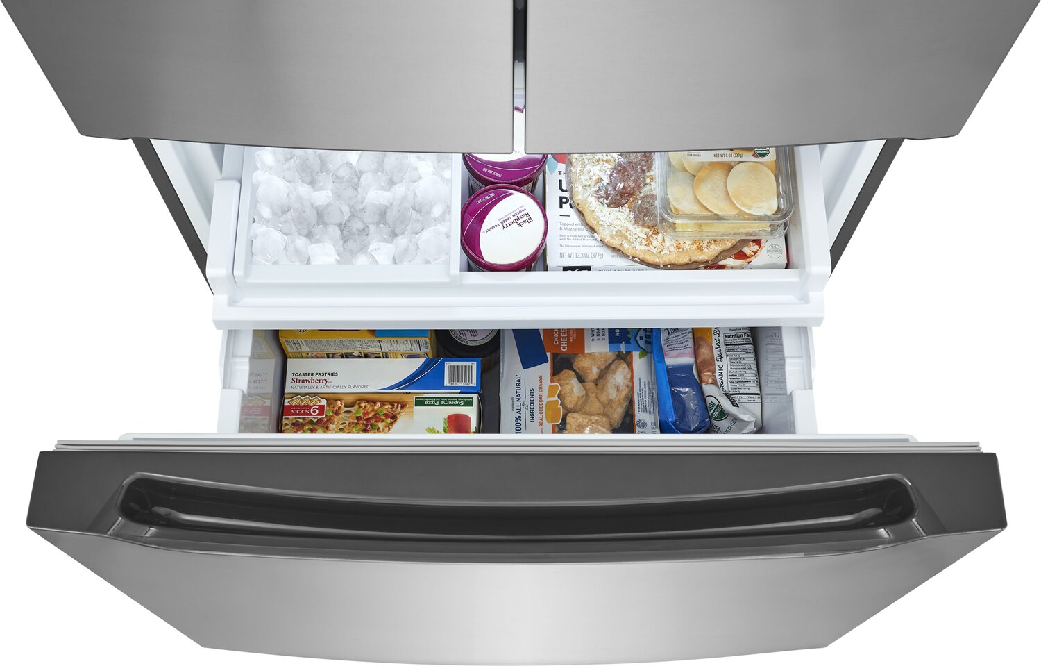 Distributeur d’eau interne : Bacs à légumes CrispSealMD : Conception compacte, grand rangement : Grands bacs de rangement dans la porte : Filtre d’eau et de glaçons PurePourMC : Système de refroidissement EvenTempMC : |