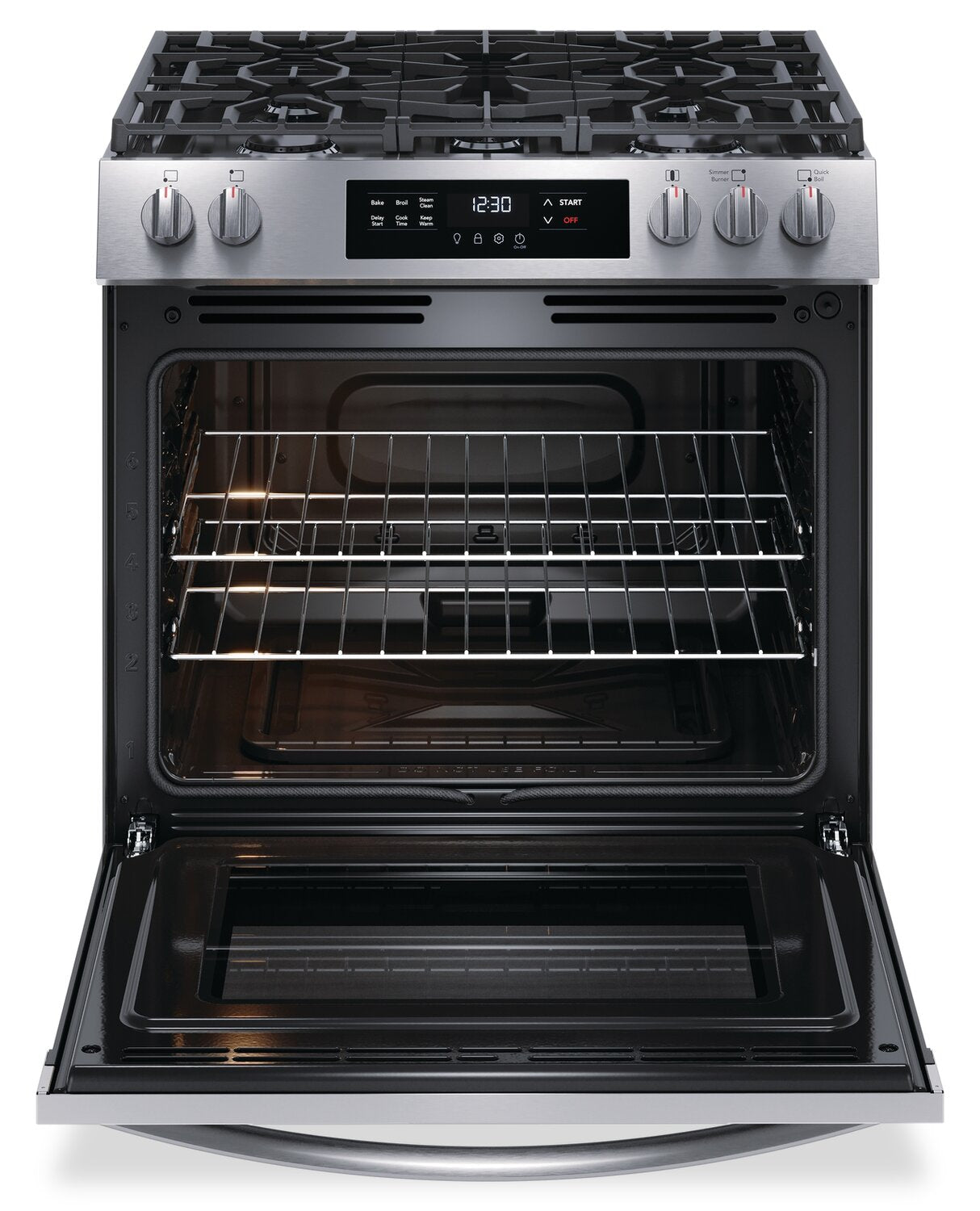 Surface de cuisson polyvalente à cinq brûleurs : Brûleur à ébullition rapide : Technologie de cuisson uniforme : Option de nettoyage à la vapeur : Très grand tiroir de rangement Store-MoreMC : Capuchons de brûleur lavables au lave-vaisselle : |